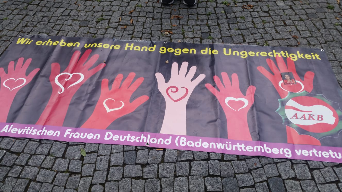 PİRHA – Almanya Alevi Birlikleri Baden Württemberg Kadınlar Birliği Bölge Temsilciliği, Stuttgart Karlsplatz’da ‘Kadına Şiddet’ etkinliği düzenledi.