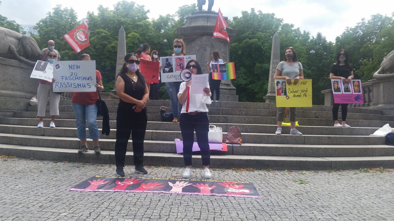 Eylemde AABF- BW Başkanı Ergün Özcan, Bölge Kadınlar Birliği Başkanı Beyhan İpek, Stuttgar AKM Eşbaşkanı ve Esslingen AKM Başkanları da yer aldı ve Mine Can Alınteri adına birer konuşma yaparak kadın mücadelesinin önemine vurgu yaptı.