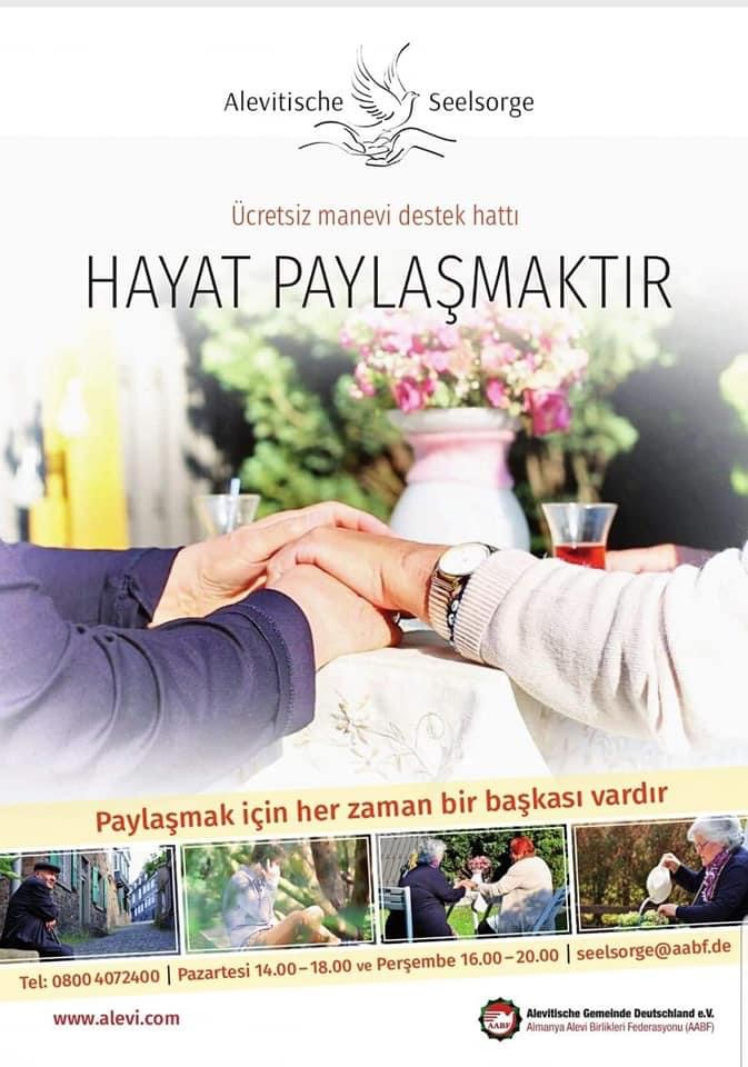 Almanya Alevi Birlikleri Federasyonu (AABF), Nisan 2021 ve Mart 2023 arası sürecek olan “Manevi Bakım Hizmetlerinde Gönüllü Alevi İnanç İnsanlarının Yetiştirilmesi” projesi kapsamında üyelerini eğitimlere katılmaya davet etti.