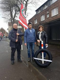 Almanya Aleviler Birliği Federasyonu (AABF) NRW temsilciliği Türkiye’nin Köln Başkonsolosluğu önüne siyah çelenk bıraktı. Ardından basın açıklaması yapıldı. Açıklamayı NRW Bölge temsilsici Funda Öztürk okudu. Öztürk açıklamada, “AKP iş başına geldiği günden itibaren Aleviler ve tüm muhalif çevreler devletin zulmüne uğramaktadır” dedi.