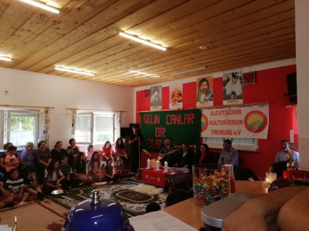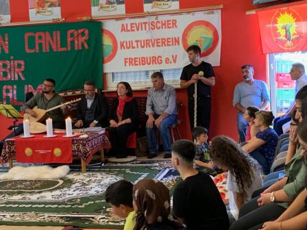 FEDA bünyesinde faaliyet yürüten Freiburg Alevi Dergahı’nda yürütülen cemi ise Pir Hüseyin Bildik yürüttü. Pir Bildik Alevilerin tarih boyunca yaşadığı zulme vurgu yaptı. Bildik, “Hangi dinde olursanız olun, her canlının nefes alma hakkı vardır. Alevilikte, incitme öldürme yoktur” dedi. Zakir Deniz Bildik’in seslendirdiği deyişler eşliğinde semah dönüldü. Ardından aşure lokmaları pay edildi.