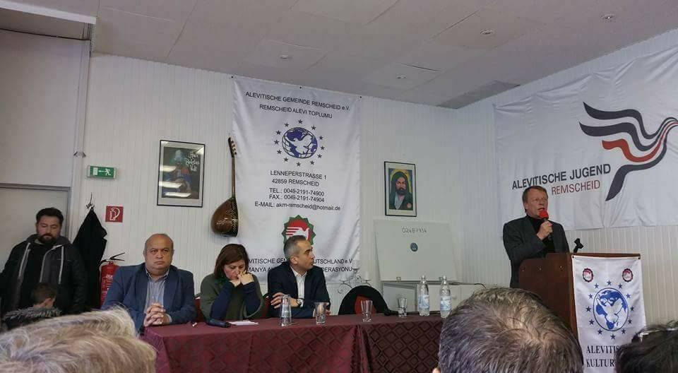 Remscheid Cemevi’nde çok sayıda kişinin katılımıyla bir toplantı yapılarak saldırıya tepki gösterildi.
