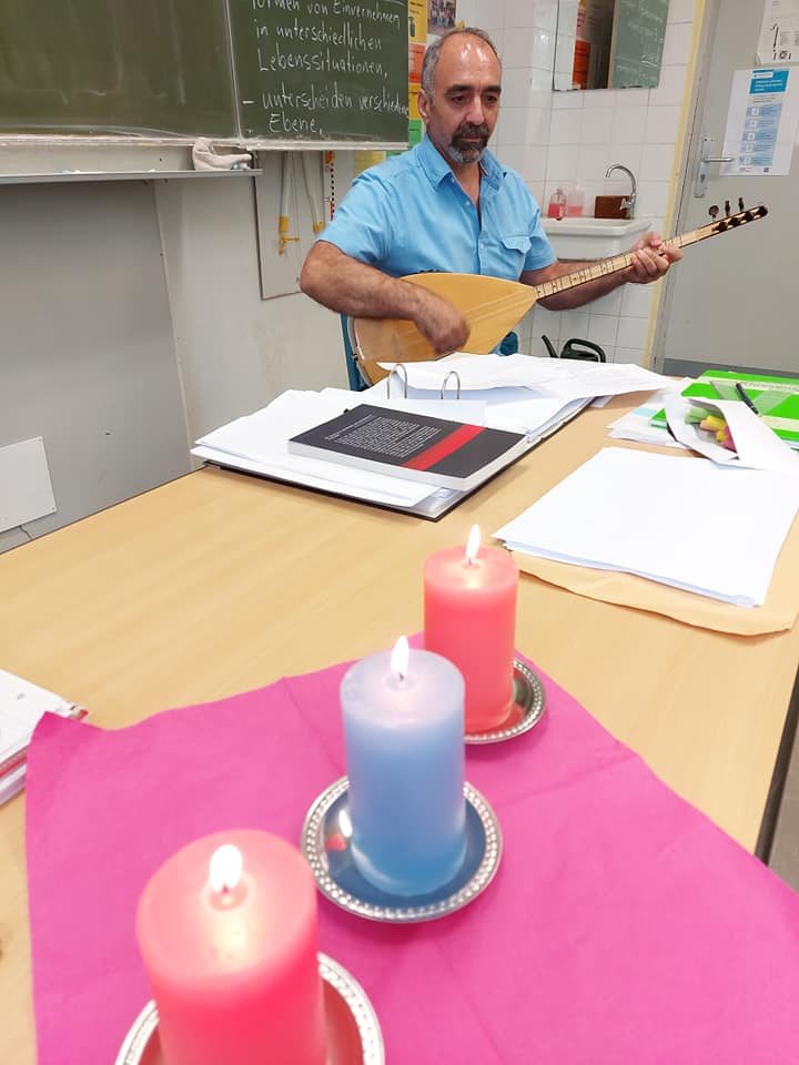 “Sevinçliyiz, mutluyuz, gururluyuz! Uzun bir aradan sonra Alevilik derslerini çocuklarımız başta olmak üzere Grevenbroich Alevi toplumuna tekrar kazandırmanının sevincini yaşıyoruz. Yaklaşık on sene önce şehrimizde verilen Alevilik dersleri öğretmen açığından dolayı sekteye uğramıştı. Öğretmenimiz Raci Arslan’ın AABF nezdinde Weingarten Üniversitesi’nde almış olduğu Alevilik dersleri eğitimi sonucu öğretmen açığımızı kapatmış olmakla beraber hemen akabinde daha önceden belirlemiş olduğumuz öğrenci listelerini güncelleyerek velilerle temasa geçip uzun uğraş ve mücadeleler sonucu tekrar derslerimizi dün itibariyle 8/9/10 ve 11’nci sınıf öğrencilerinden bir derslik, bugün de 5/6/7’nci sınıflar ile bir derslik olmak üzere toplamda iki sınıf oluşturarak başlattık ve 1’den 4’e kadar oluşacak bir ilkokul sınıfını daha oluşturabilmenin gayretiyle çalışmalarımızı sürdürüyoruz.