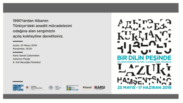 PİRHA- 1990’lardan bugüne Türkiye’de kültürel alanda verilen anadil mücadelesini konu alan “Bir Dilin Peşinde” sergisi 23 Mayıs’ta İstanbul’da Karşı Sanat’ta başlıyor. Mimar Sinan Güzel Sanatlar Üniversitesi Sosyoloji Bölümü’nde yüksek lisans yapan Elif Yıldız, sergiyi merak eden ve ilgilenen herkesi davet etti.