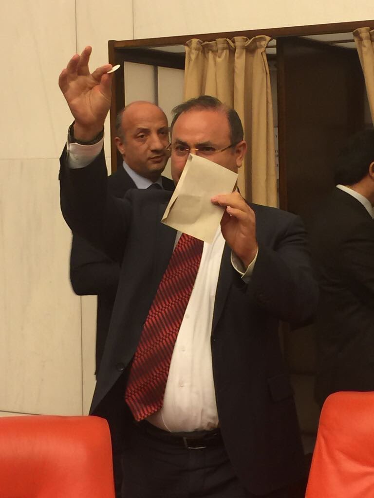 Yaşanan kalabalık üzerine CHP’li vekillerin itirazıyla oylama durduruldu ve kabinler ile kürsünün boşaltılması kararı verildi.