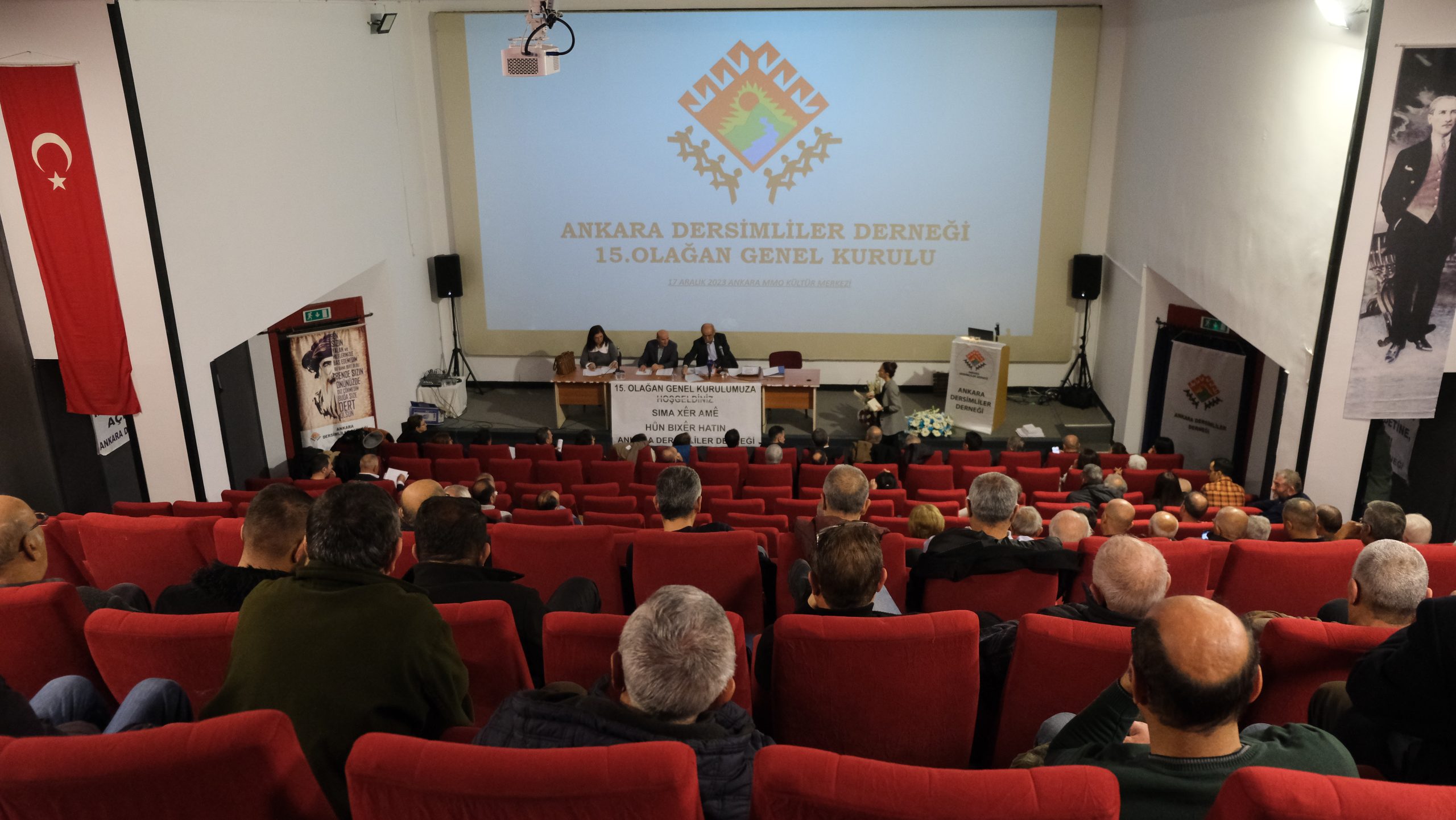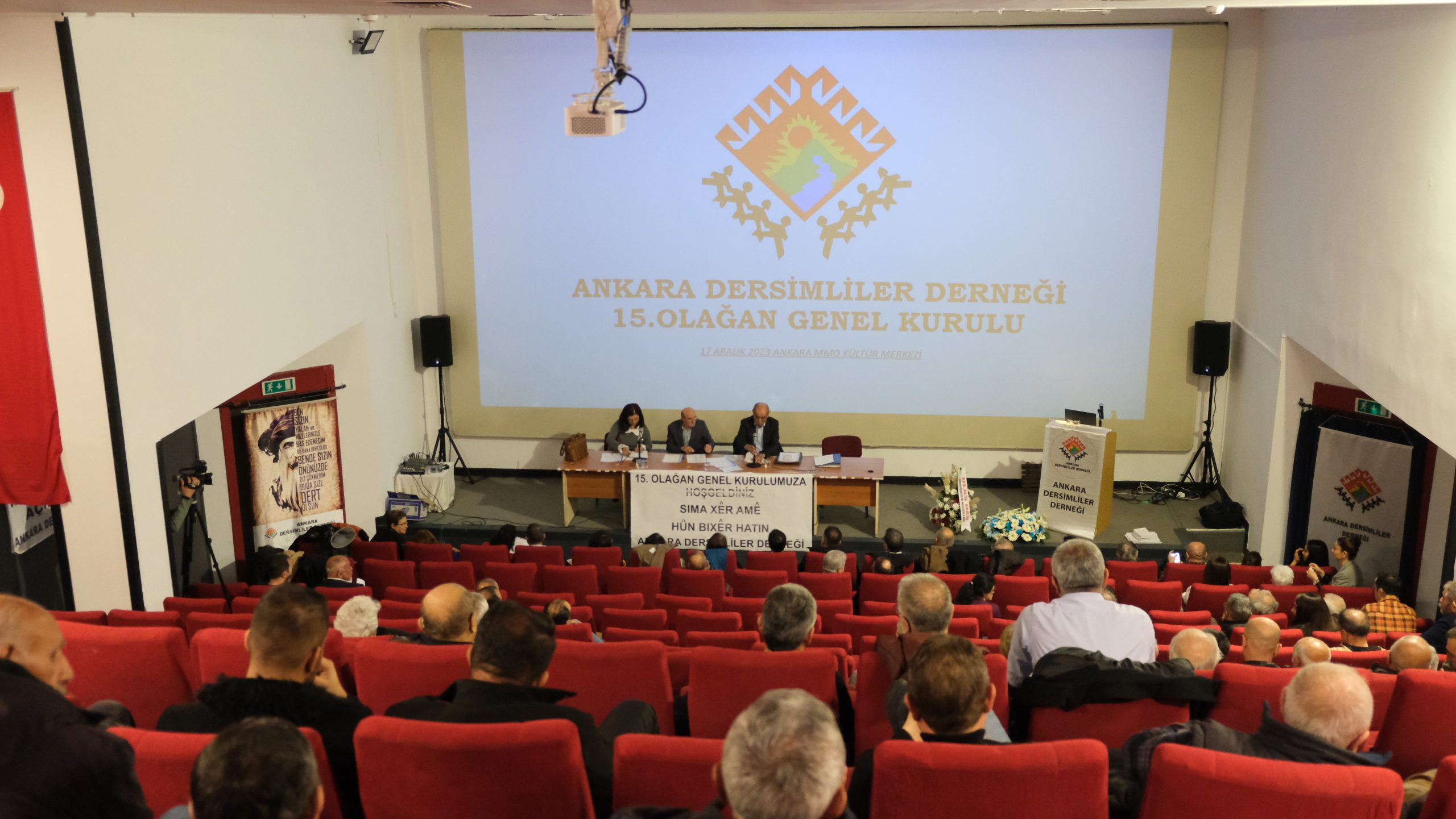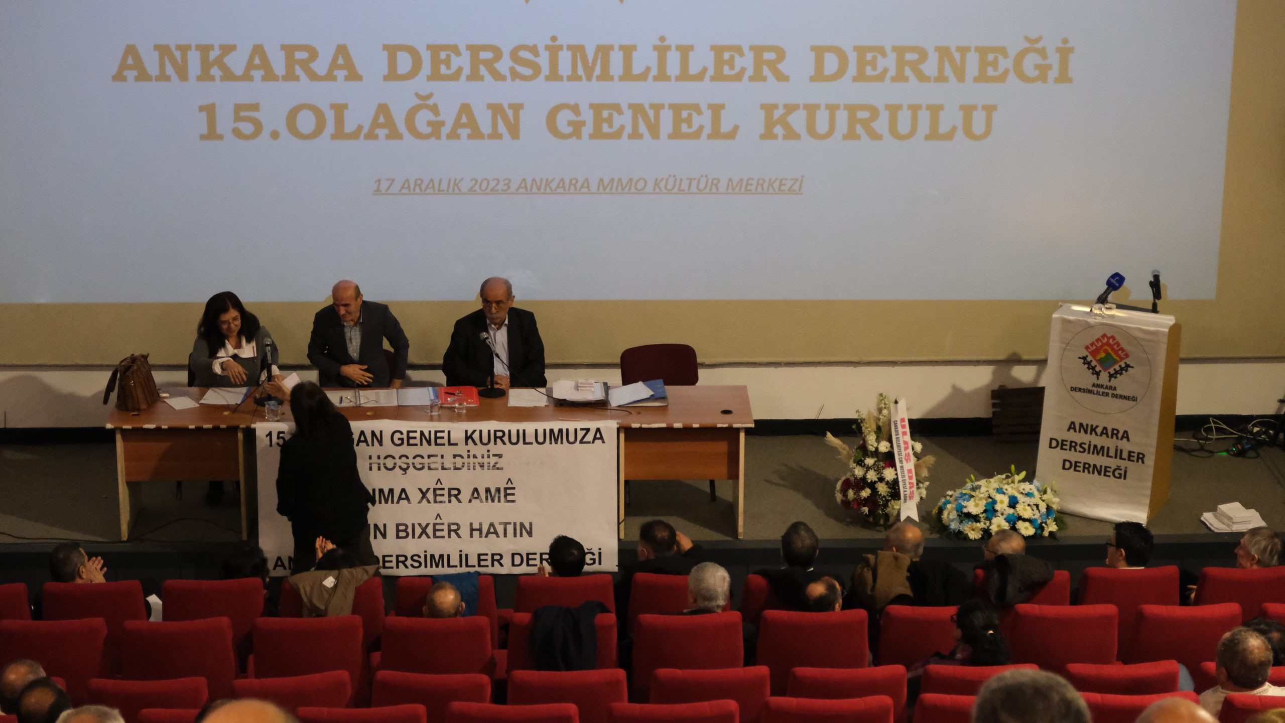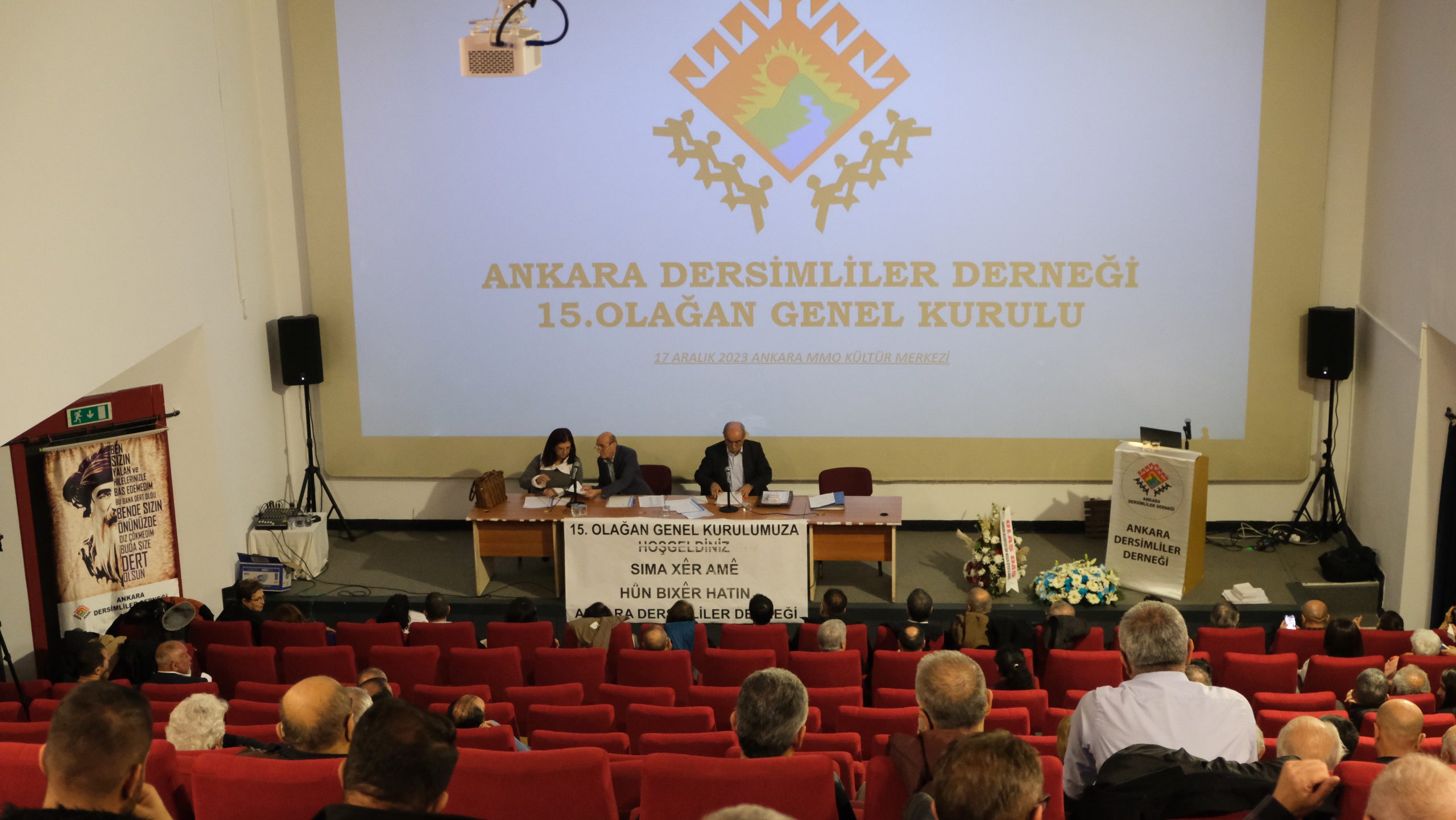 Salonda, “Dilimize, kültürümüze, inancımıza yönelik asimilasyona hayır. Seyit Rıza ve arkadaşlarının mezar yerleri açıklansın” yazılı pankartlar yer aldı. Dersimde kaybedilenler adına saygı duruşu ile başlayan kurul, divanın belirlenmesi ile devam etti. Divana; Kamil Ateşoğulları, İbrahim Elveren ve Elif Gül seçildi.
