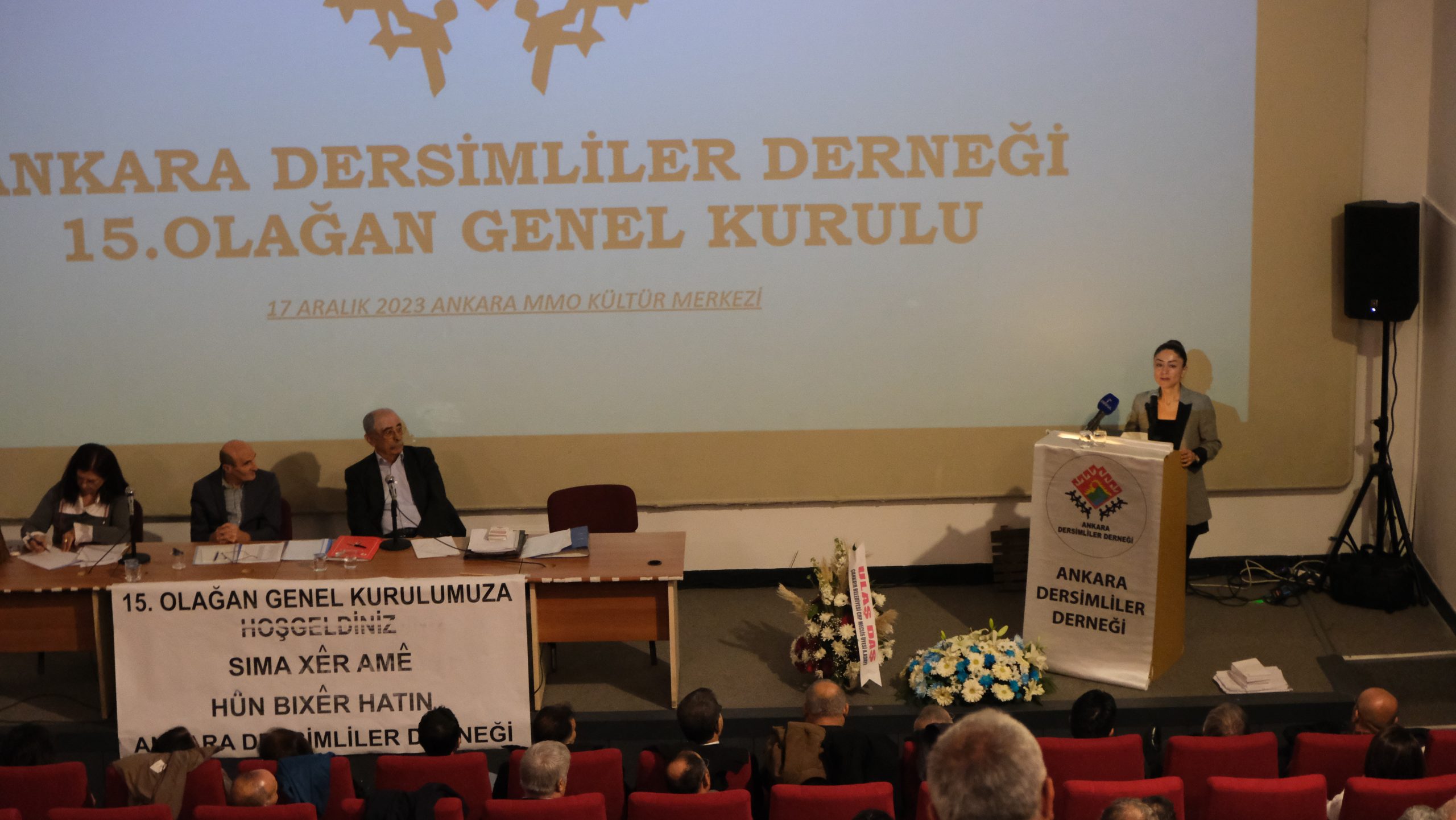 Açılış Konuşmasını yapan Ankara Dersimliler Derneği Başkanı Çiğdem Camkıran,“Derneğimiz yaklaşık 30. yılına girecek. Kurucumuz Kemal Yıldız nezdinde bütün arkadaşlarımızı saygıyla anmak istiyoruz. Ben 14. Dönemde görev alan ve derneğe emeği geçen herkese teşekkür etmek istiyorum. Aleviler için, Kürtler için her dönem çok zordu. Geçtiğimiz iki yıl boyunca elimizden gelen her şeyi yapmaya çalıştık. Hepimizin örgütlenmeye bir arada olmaya ihtiyacımız. 38’i yaşamış bir halk olarak bizim bu dayanışmaya ihtiyacımız var. Süreç bir kadın başkan olarak ilk defa beni getirdi, ama ne yazık ki feodal yapıyı geride bırakamamışız, bu konuda hepimizin desteğini istiyorum. Kadın sayısını arttırmak istiyorum. Bazı kurumlar, Dersim ismini duyunca ne yazık ki bizi uzakta bırakıyorlar. Bunu kırmamız ve birbirimize destek olmamız lazım” dedi.