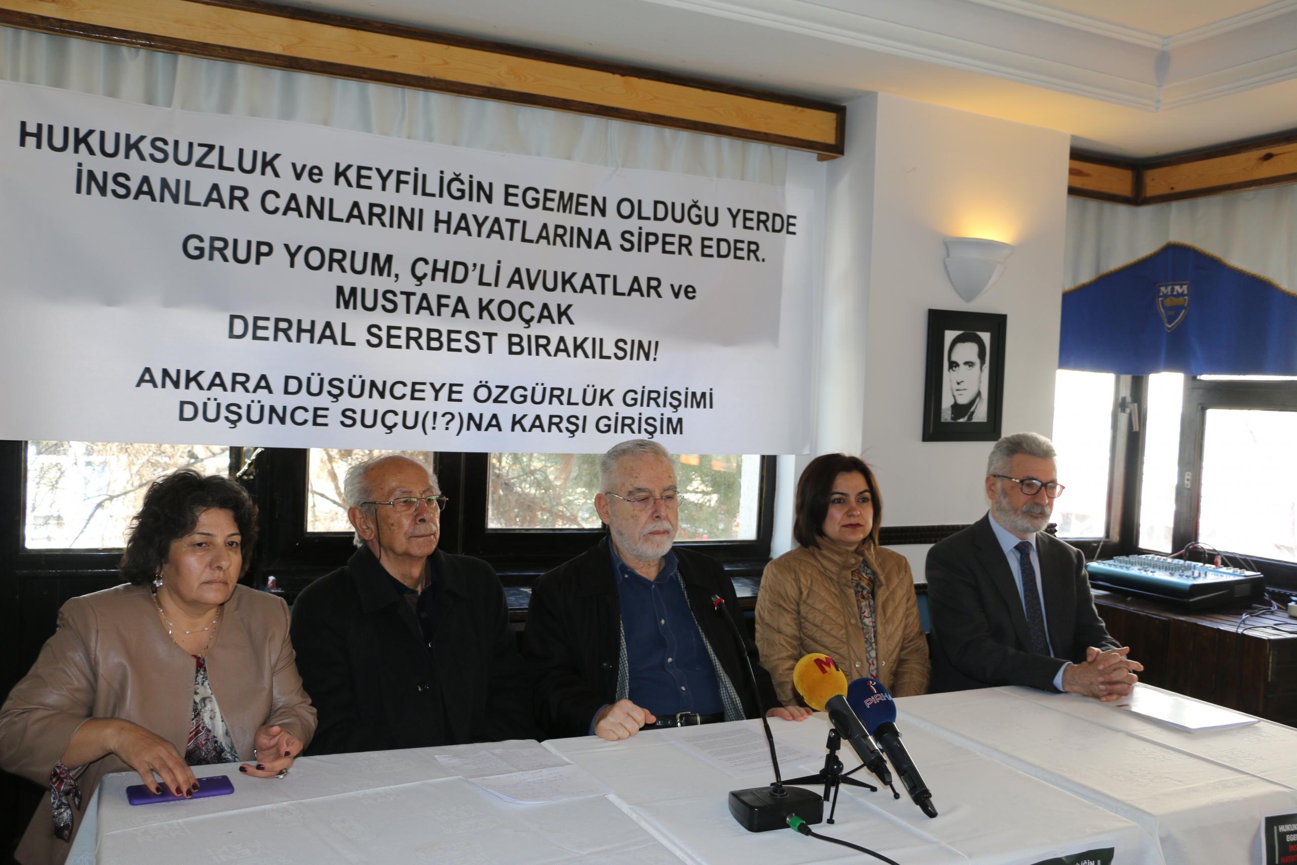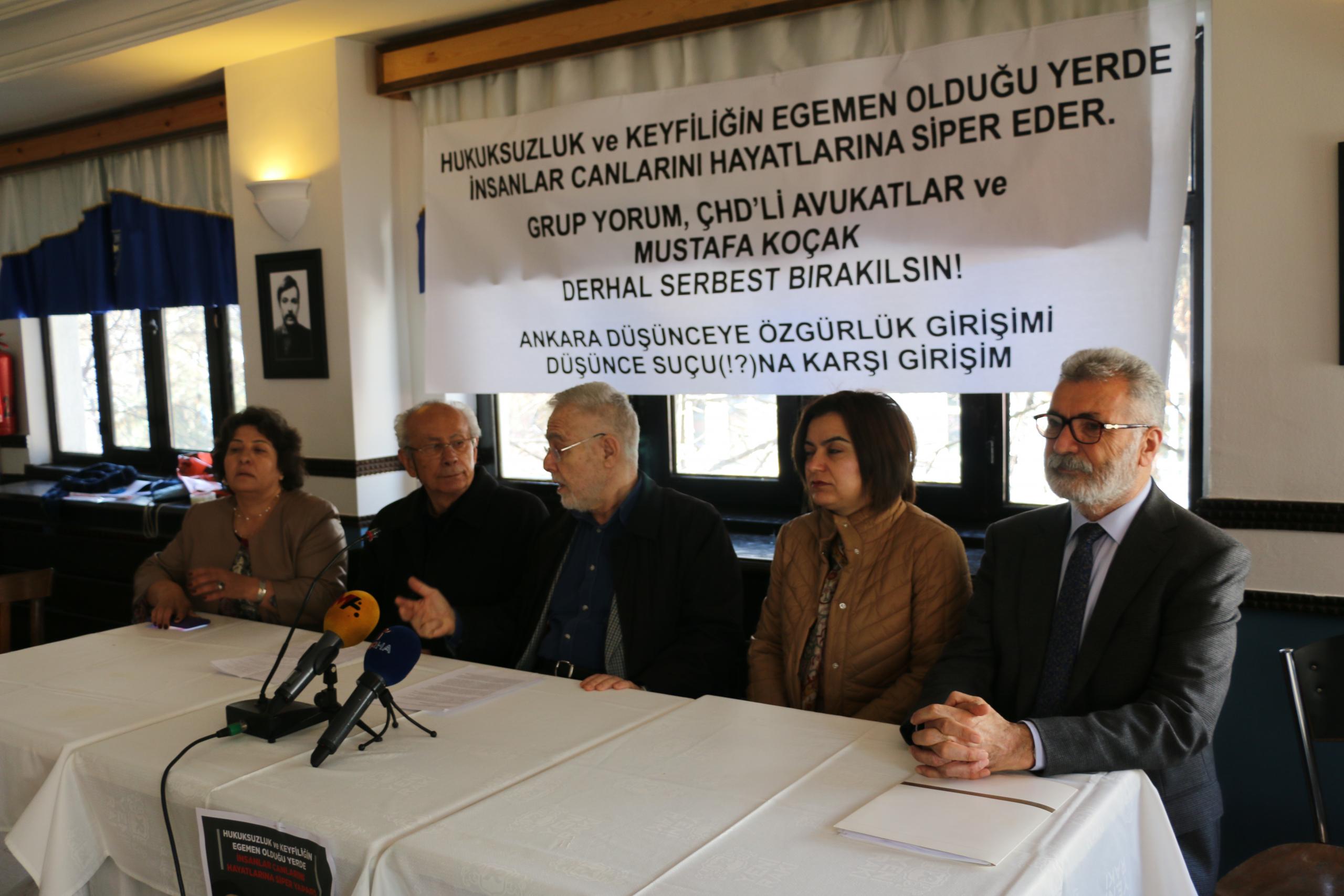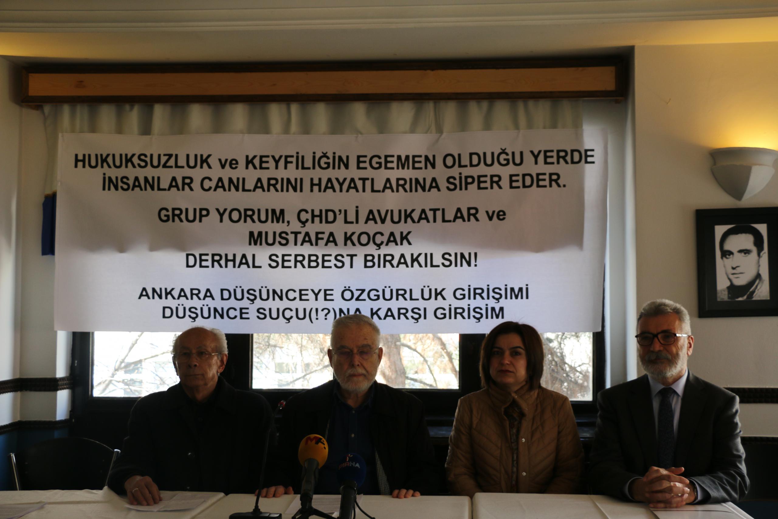 PİRHA – Baskı ve yasakların kaldırılması için 8 aydır ölüm orucu direnişi yapan Grup Yorum üyelerine ve ÇHD’li ve HHB’li avukatlara destek amacıyla Ankara Düşünceye Özgürlük Girişimi bir basın toplantısı yaptı. Yapılan açıklama ve konuşmalarda iktidarın baskılara son vermesi ve Grup Yorum’un şarkılarını özgürce söylemesi gerektiği vurgulandı.