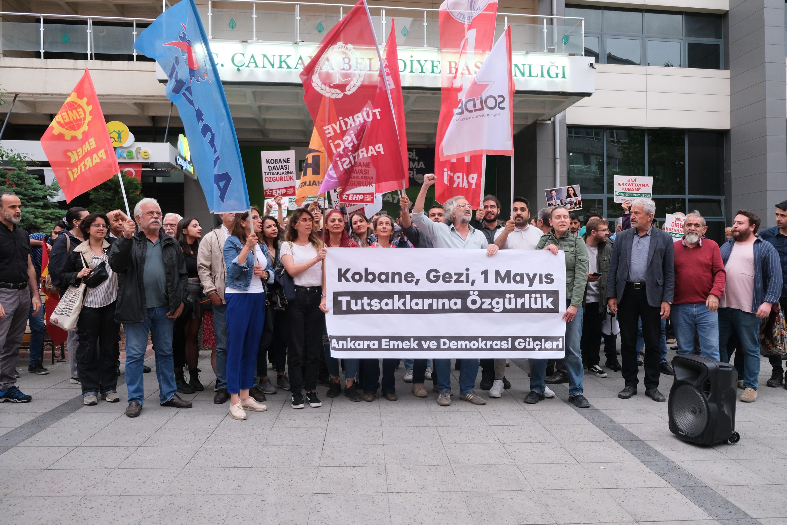 PİRHA-Ankara Emek ve Demokrasi Güçleri; Gezi, Kobane ve 1 Mayıs tutuklularının serbest bırakılması talebiyle açıklama yaptı. Açıklamada, “Karşımızda emeği, doğayı, kentlerimizi, yaşamlarımızı sömürerek, şiddetle bastırarak ayakta duran bir iktidar var.Karanlık gidecek Gezi kalacak, Karanlık gidecek Kobane Kalacak, Taksim emeğin olacak. Eşitlik özgürlük, barış ve adalet mücadelesini yanyana büyütmeye devam edeceğiz “denildi.