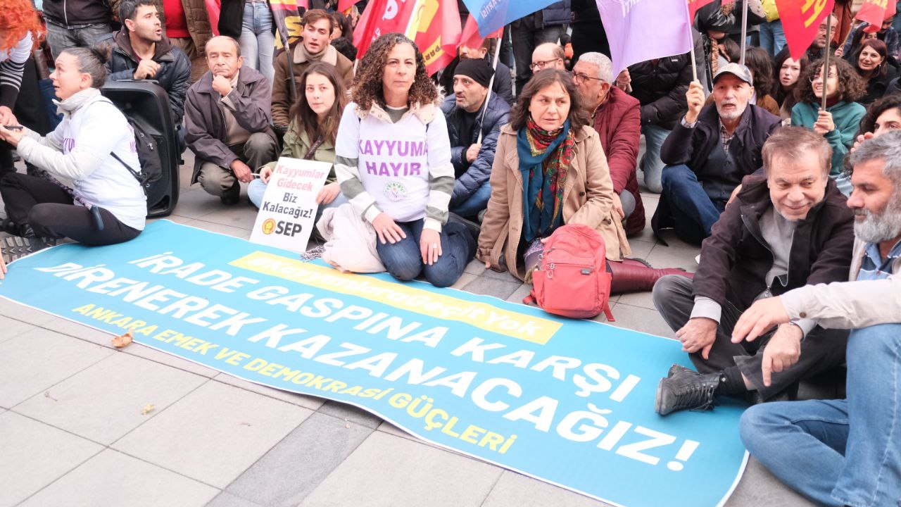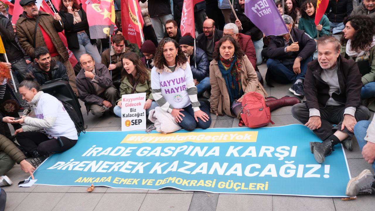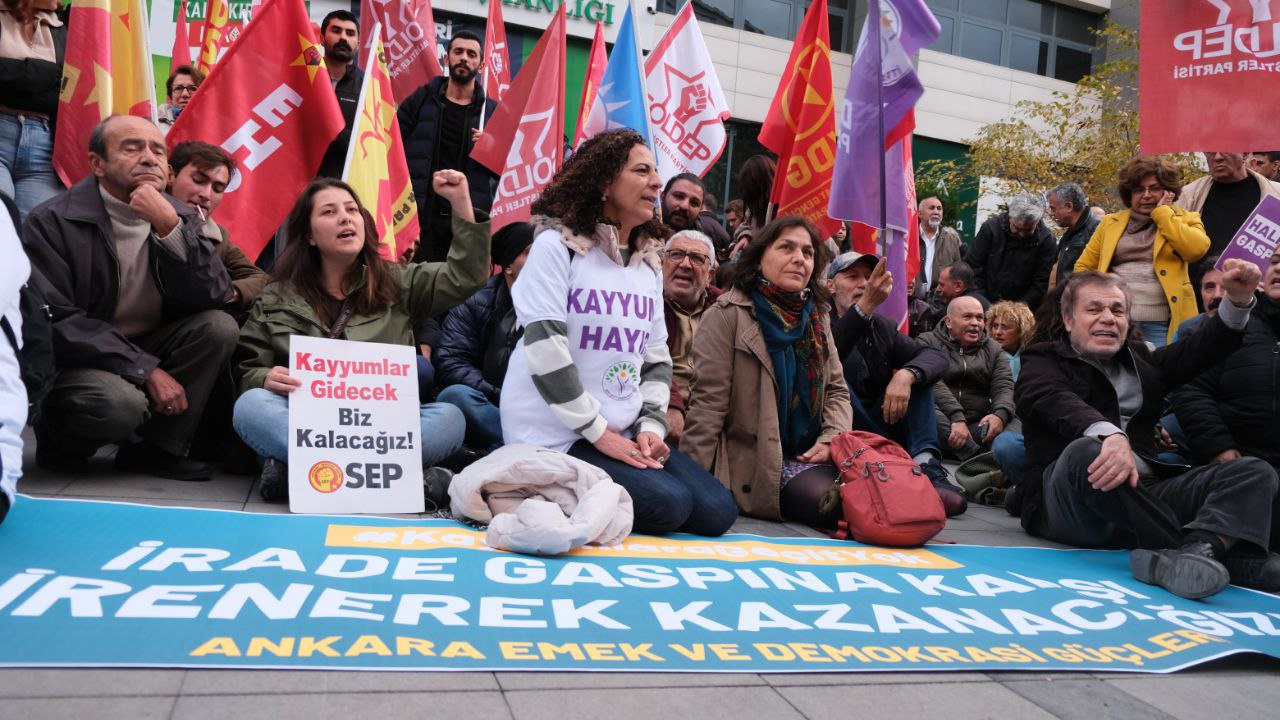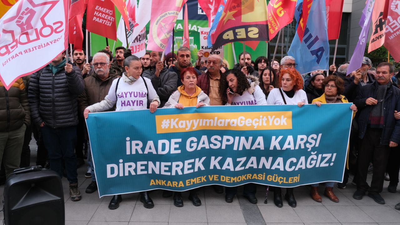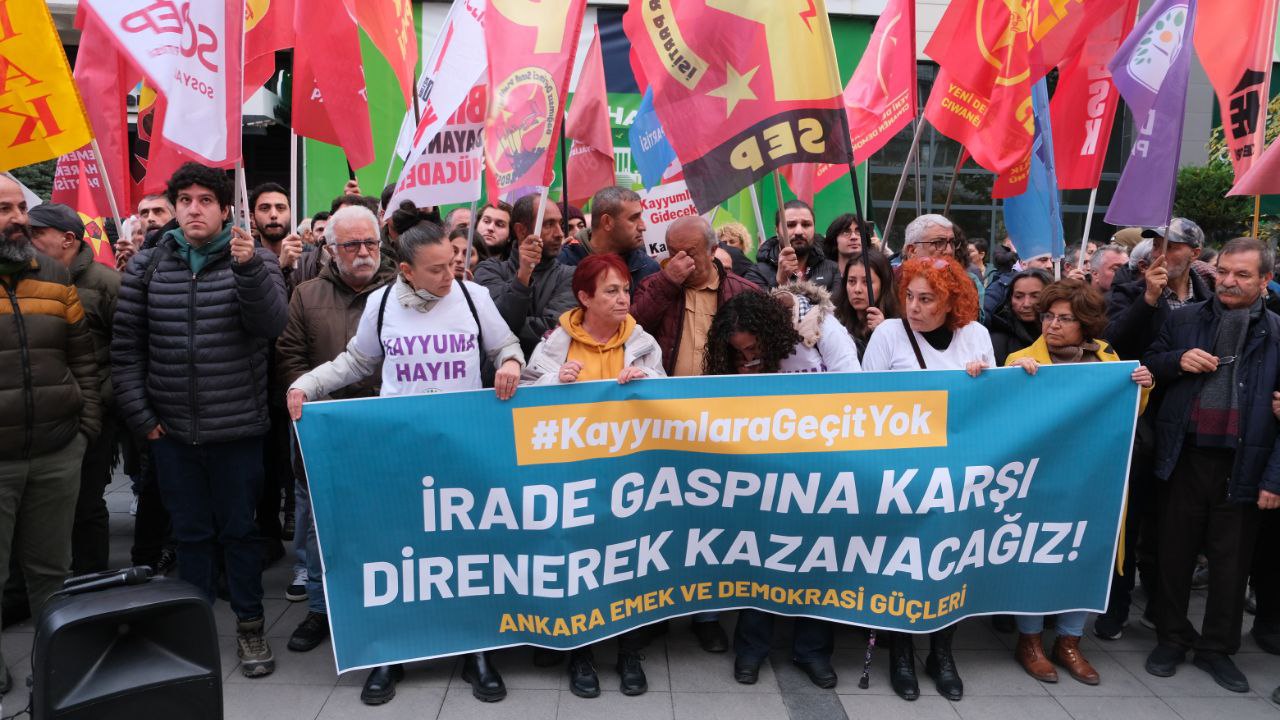 Ankara Emek ve Demokrasi Güçleri; Esenyurt, Mardin, Batman, Halfeti, Hakkari Belediyelerinin ardından Dersim ve Ovacık Belediyelerine de kayyım atanmasını protesto etmek için Çankaya Belediyesi önünde basın açıklaması yaptı.