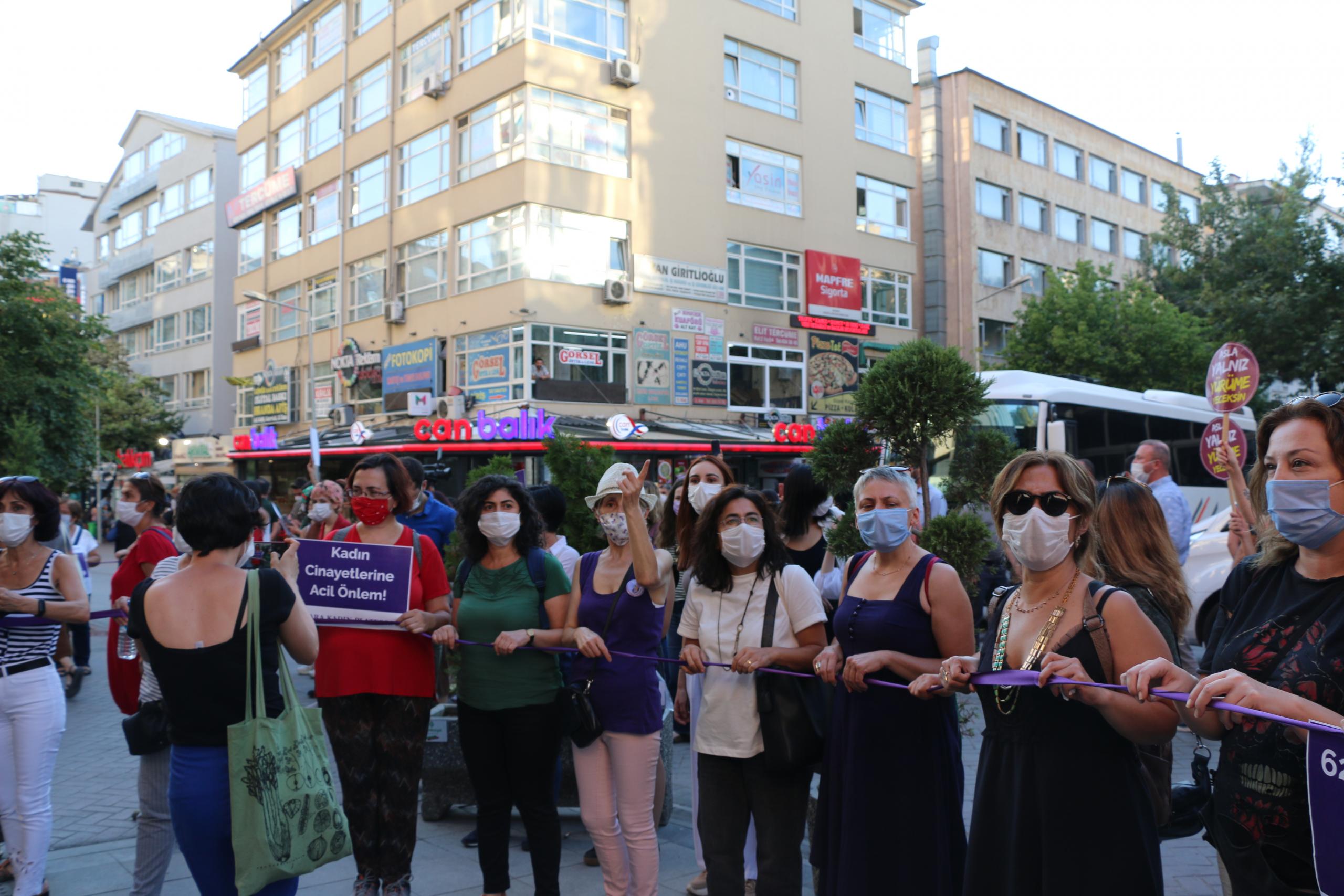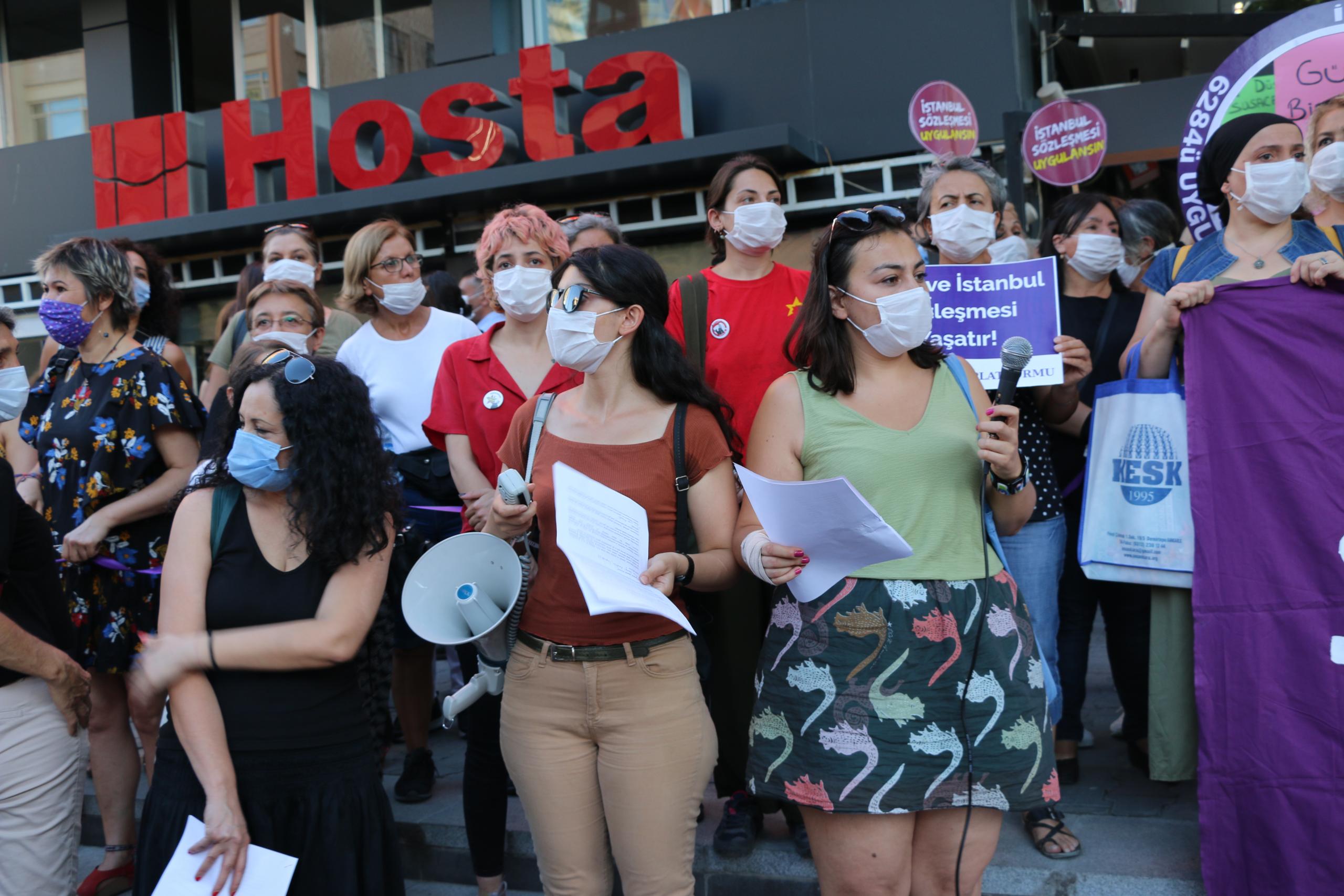 Açıklamada, “Bu ülkede her gün kadınlar katlediliyor! Erkek şiddetiyle aramızdan ayrılan kadınların isimlerini ezbere sayıyoruz. O isimler akıllarımızda, kalplerimizde, hiç birini unutmuyoruz. Eğer İstanbul Sözleşmesi uygulansaydı, hayatta olabilirlerdi. İşte bu yüzden “Hayatlarımız için İstanbul Sözleşmesi uygulansın diyoruz” denildi.