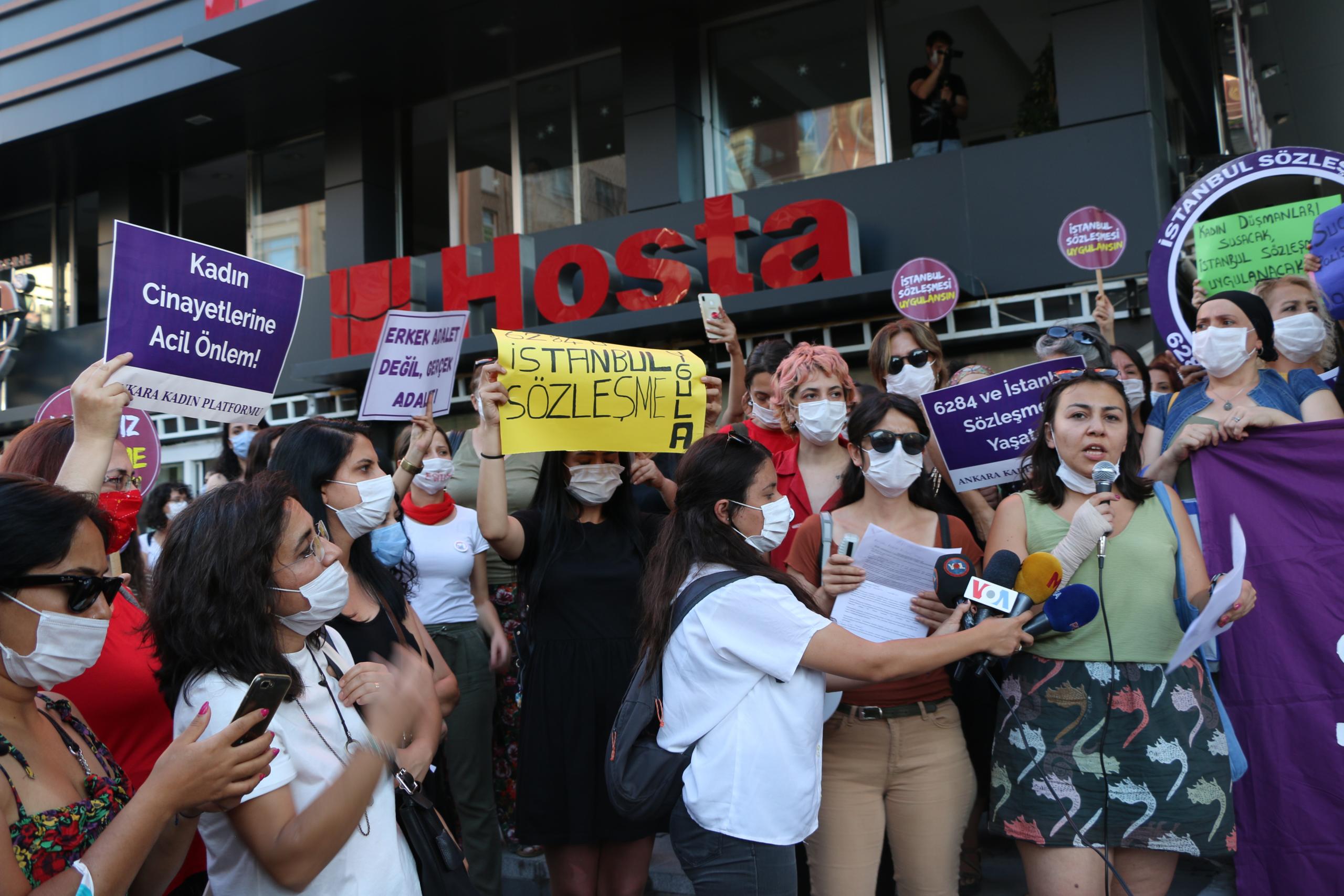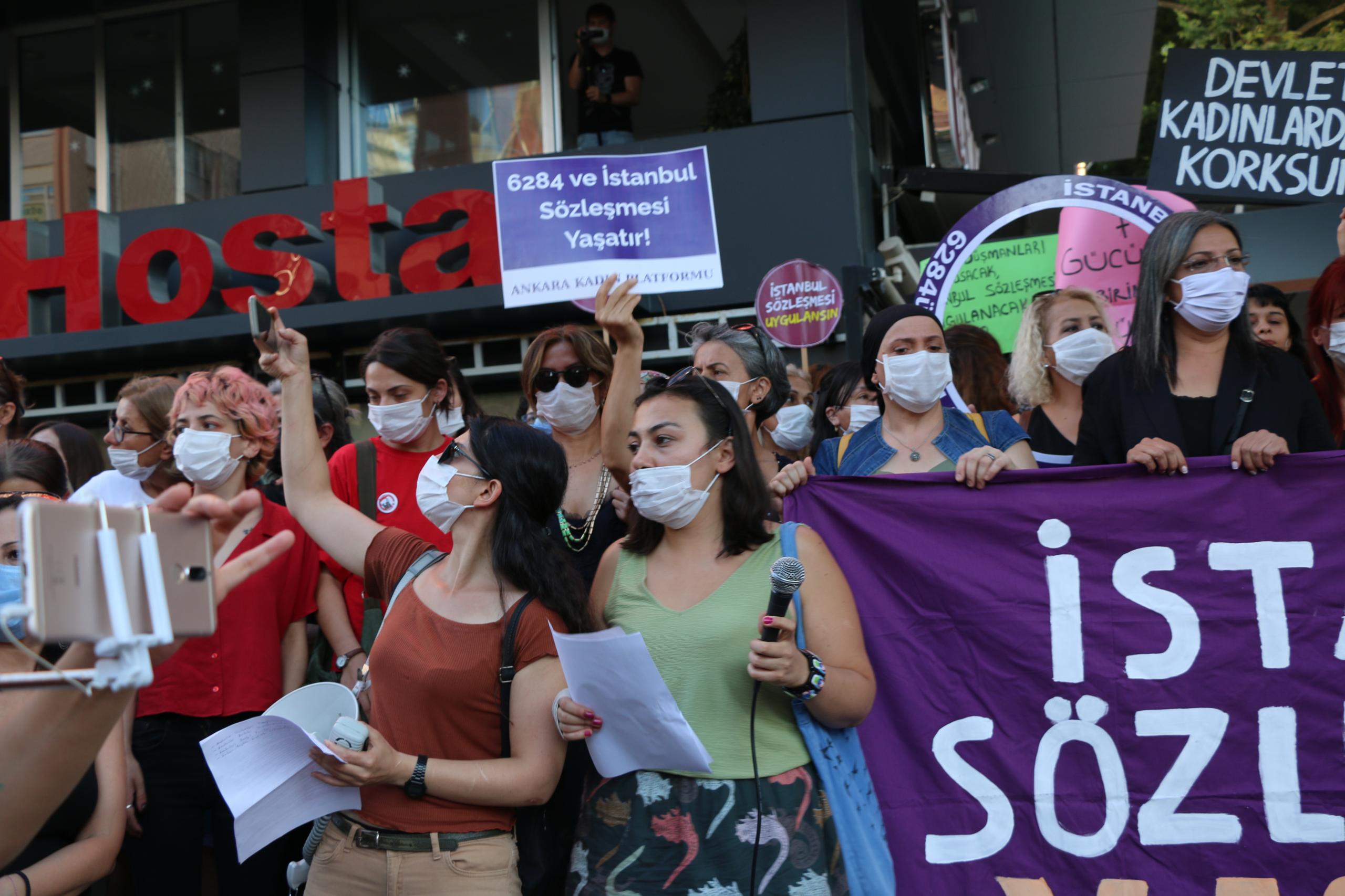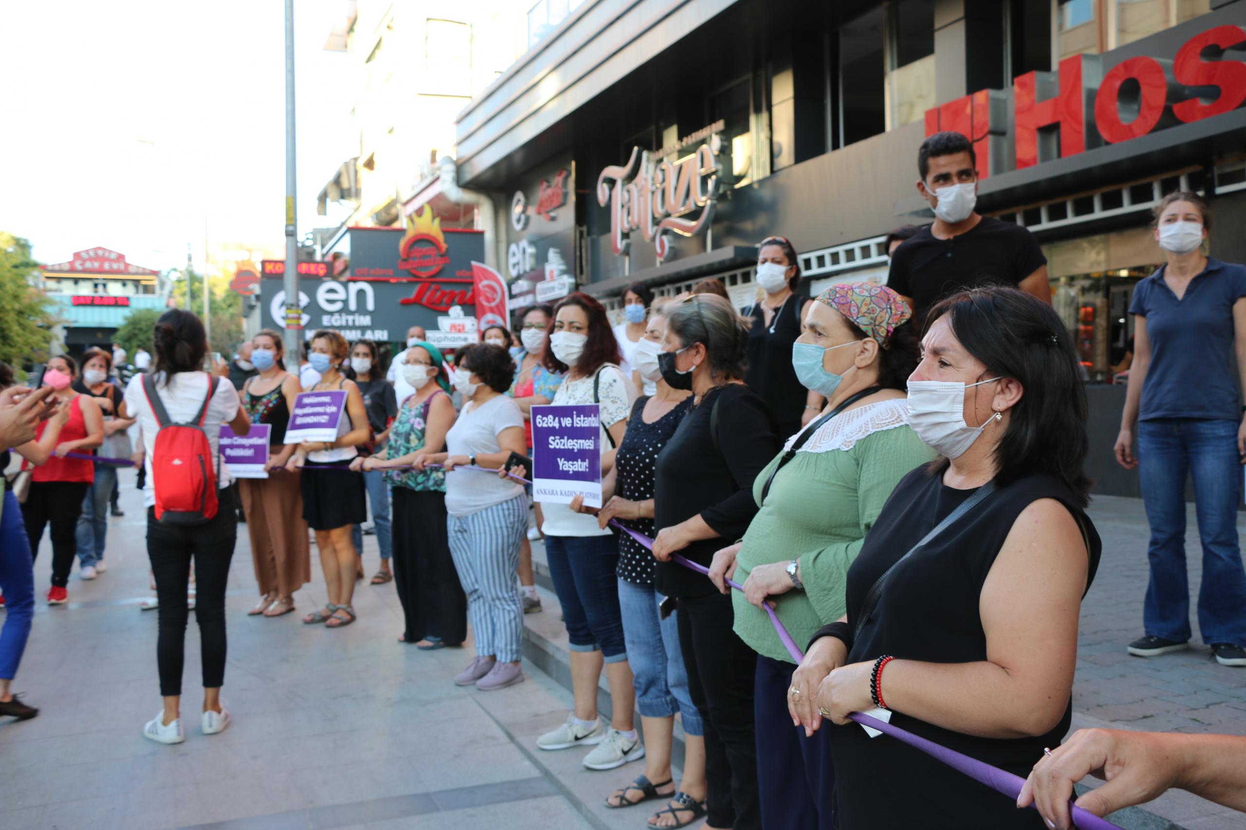 PİRHA- Ankara Kadın Platformu öncülüğünde Kızılay Sakarya Meydanı’nda kadınlar “Haklarımızdan vazgeçmiyoruz, İstanbul Sözleşmesi uygulansın” dedi.