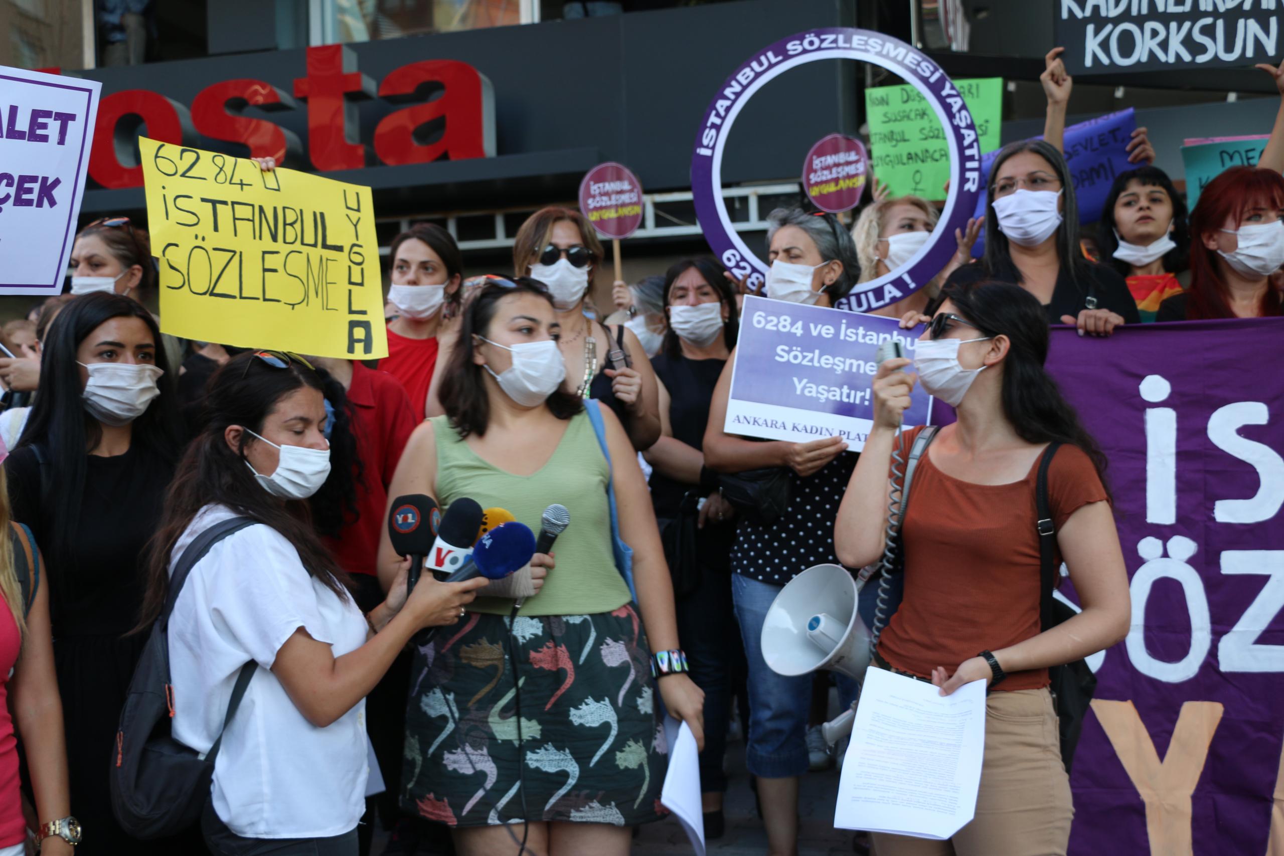 Ankara Kadın Platformu “Haklarımızdan vazgeçmiyoruz, İstanbul Sözleşmesi uygulansın” şiarıyla Kızılay Sakarya Meydanı’nda basın açıklaması yaptı. Açıklamayı Ankara Kadın Platformu adına Tülay Devrim Kılınç okudu.