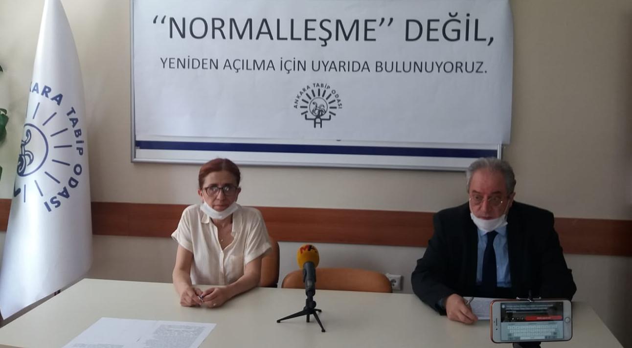 Ankara Tabip Odası, merkez binasında “Yeniden açılma döneminde sağlık hizmetlerine yönelik önerilerimiz” başlıklı basın toplantısı yaptı.