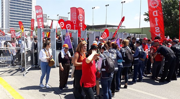 AKM önünde toplanan büyük kalabalık üç farklı arama noktasından geçerek alana alındı. Kadınların sırt çantaları ise güvenlik noktalarından valilik kararı nedeniyle içeri alınmadı.