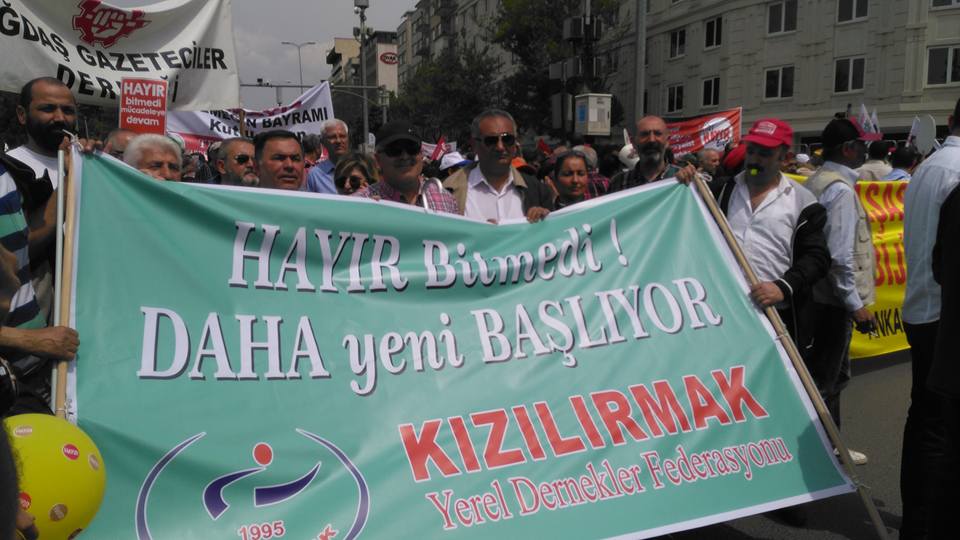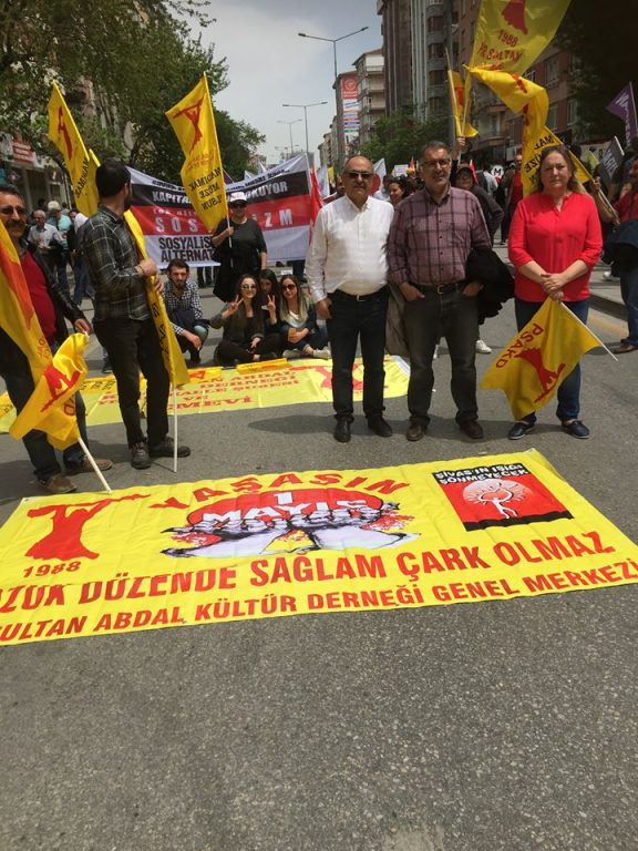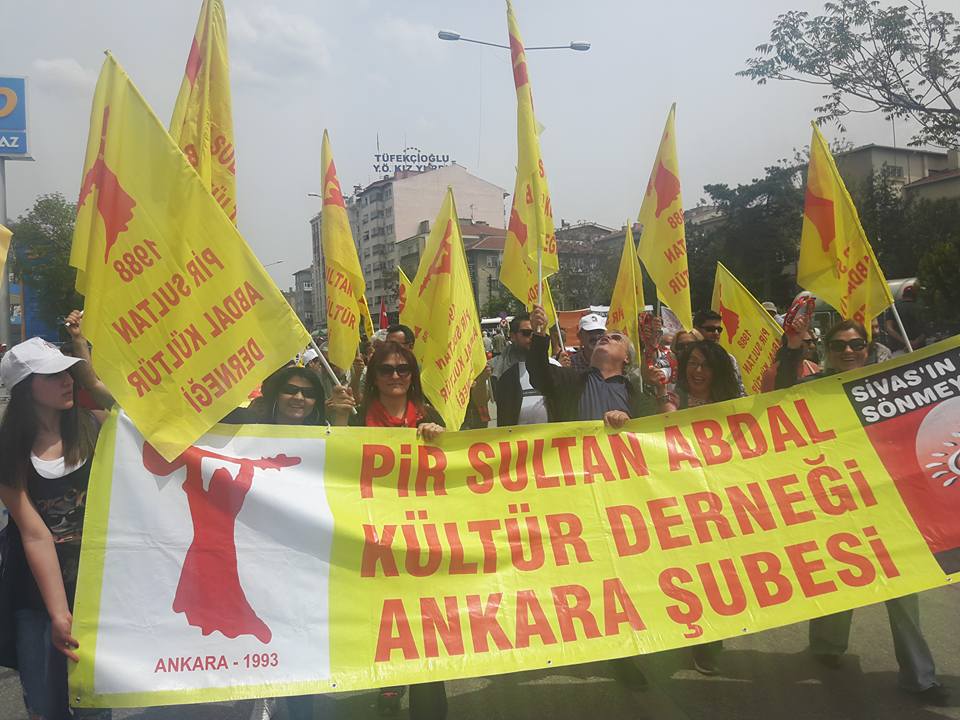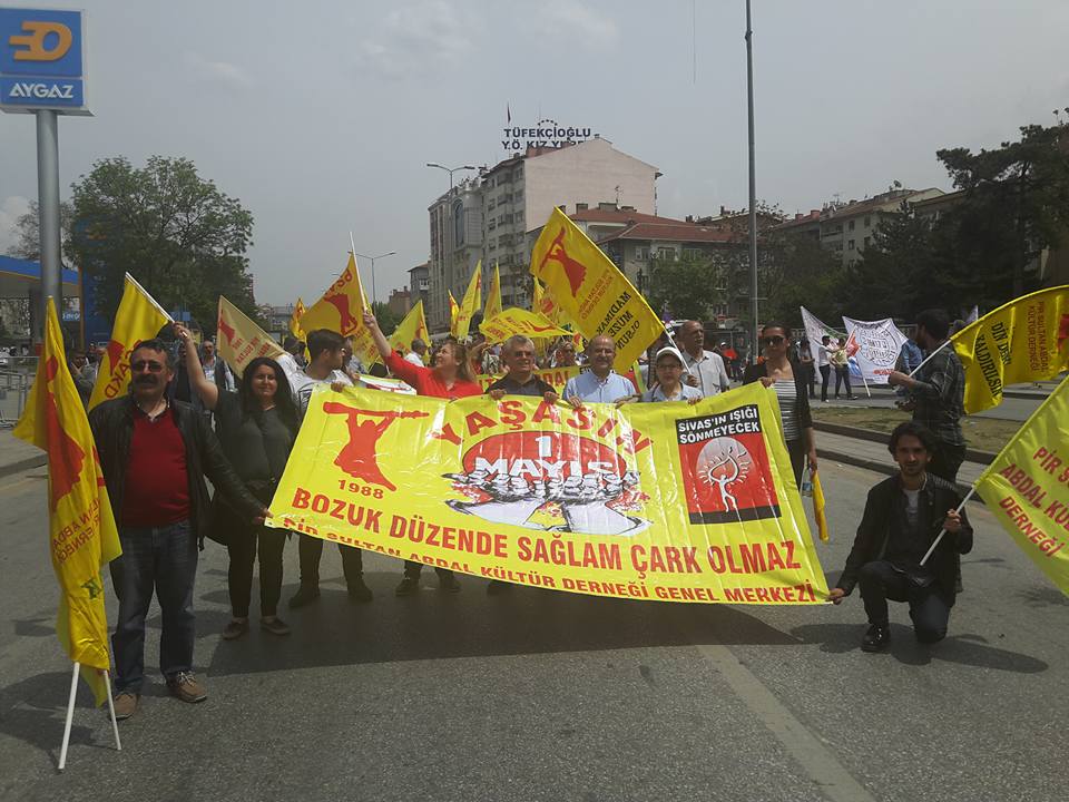 Ankara’da 1 Mayıs’a Aleviler de yoğun katılım gösterdi. Pir Sultan Abdal Kültür Derneği ve Demokratik Alevi Dernekleri, Kızılırmak Yerel Dernekler Federasyonu kendi pankartlarıyla 1 Mayıs’a katıldı.