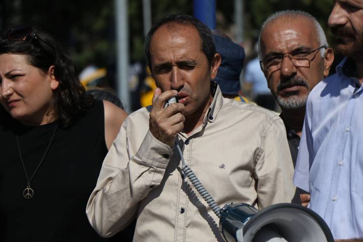 Anmada konuşan KESK Eş Genel Başkanı Mehmet Bozgeyik, yaşanan katliamın utanç olduğunu belirtti. 10 Ekim’de yaşamını yitirenlerin mücadelelerine sahip çıkacaklarını belirten Bozgeyik, “Onların bıraktığı yerden bu mücadeleye devam edeceğiz” diye konuştu. Gar önündeki meydanın adının 10 Ekim Barış ve Demokrasi Meydanı olarak değiştirilmesi için talepte bulunduklarını söyleyen Bozgeyik, “Bu alanın adının değişmesi için mücadelemiz sürecek” şeklinde konuştu.