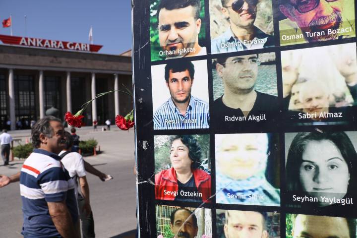 10 Ekim 2015 tarihinde Ankara’da düzenlenen Barış Mitingi’ne yönelik gerçekleştirilen katliamda yaşamını yitiren 102 kişi, katliamın 22’nci ayında Ankara Garı önünde anıldı.