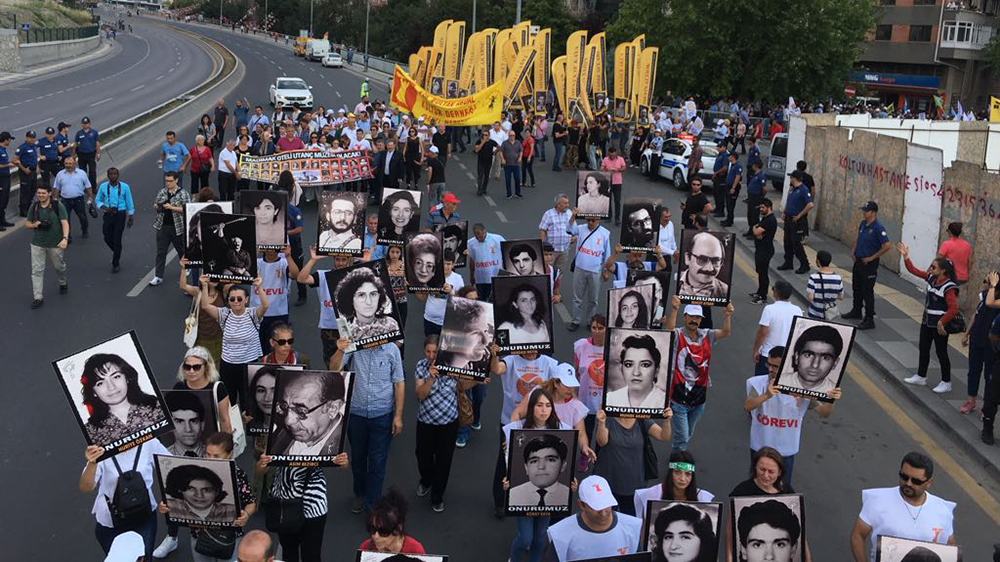 Sıhhiye Köprüsü’nden yürüyüşe başlayan kitle “Sivas’ın ışığı sönmeyecek”, “Sivas’ı unutma unutturma” sloganları atılarak yaşamlarını yitiren canların resimleri taşındı.