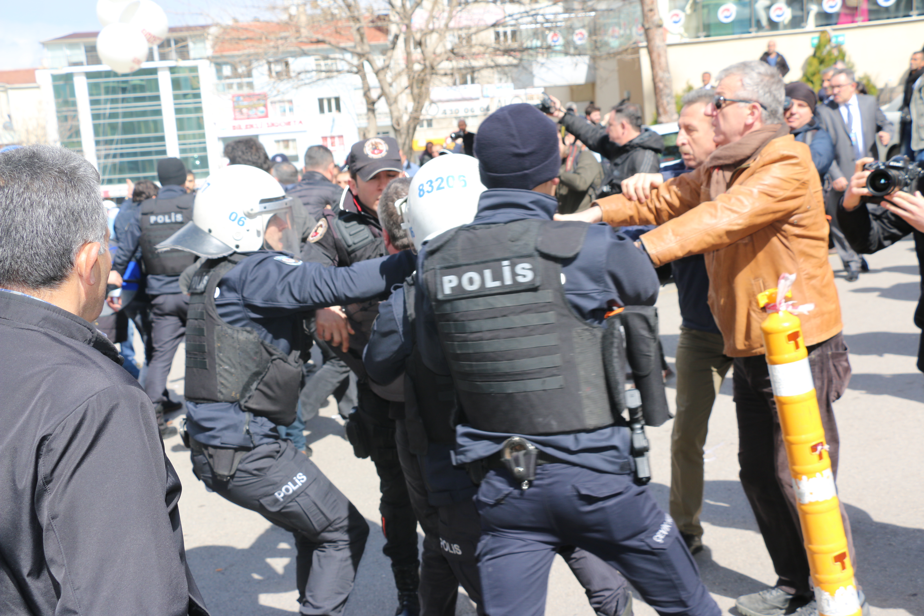 Tıp Bayramı nedeniyle Ankara Numune Hastanesi önünde hastanelerin özelleştirilmesi ve şehir hastanelerine ilişkin, sağlık emekçilerinin çalışma ortamlarının yeniden düzenlenmesi ve yoksulluk sınırının altında ücret alan sağlık personellerinin durumuna dikkat çekmek amacı ile TTB,SES ve Sağlık örgütlerinin ortak yapmak istediği basın açıklamasına polis izin vermeyerek müdahalede bulundu.