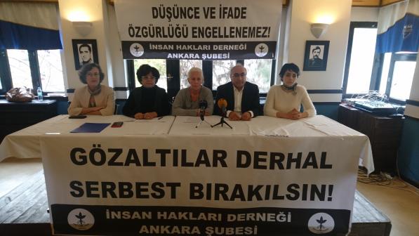 İHD adına hazırlanan basın metnini Sevil Turgut okudu. Turgut, “Gözaltılar derhal serbest bırakılsın.” diyerek düşünce ve ifade özgürlüğü çerçevesinde itiraz hakkını kullanan herkesin polis baskısı ve tutuklamalarla karşı karşıya geldiğini söyledi.