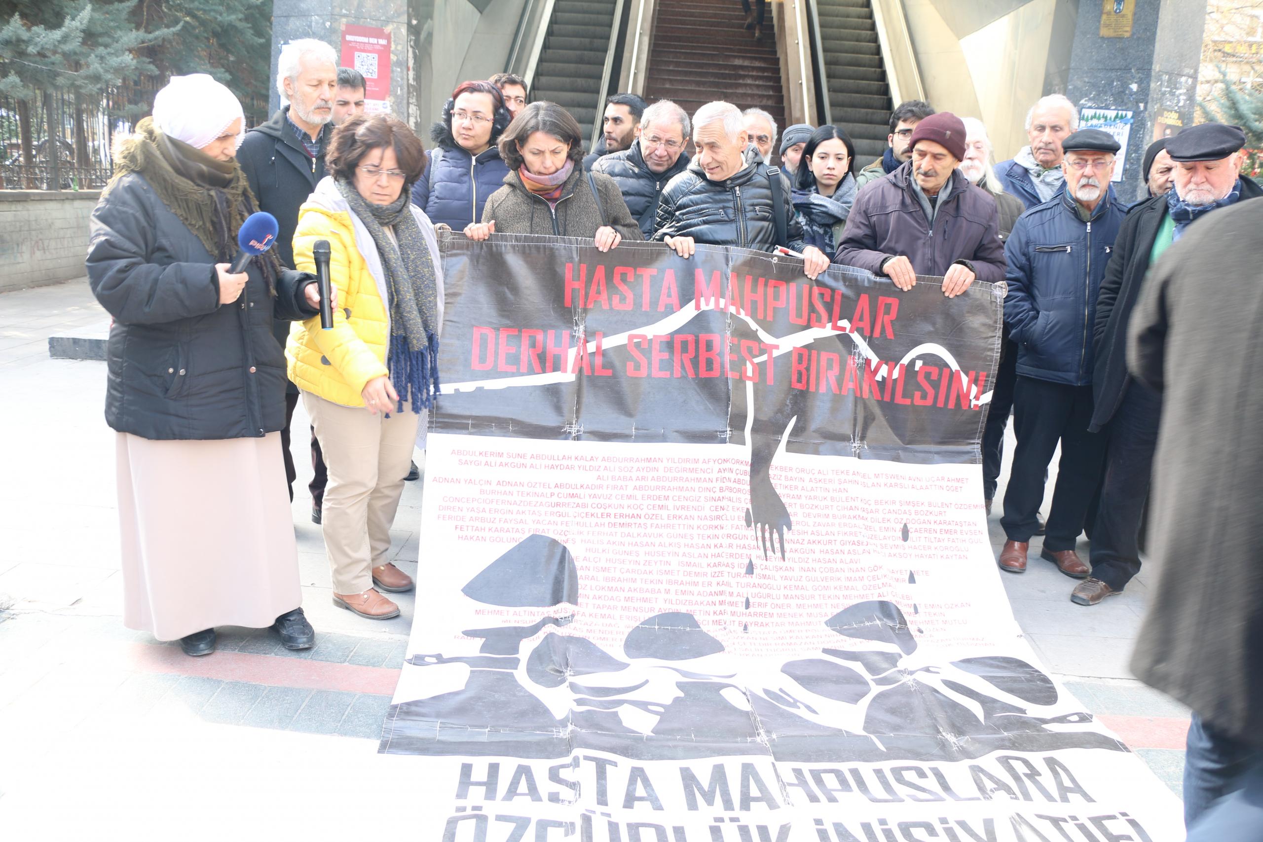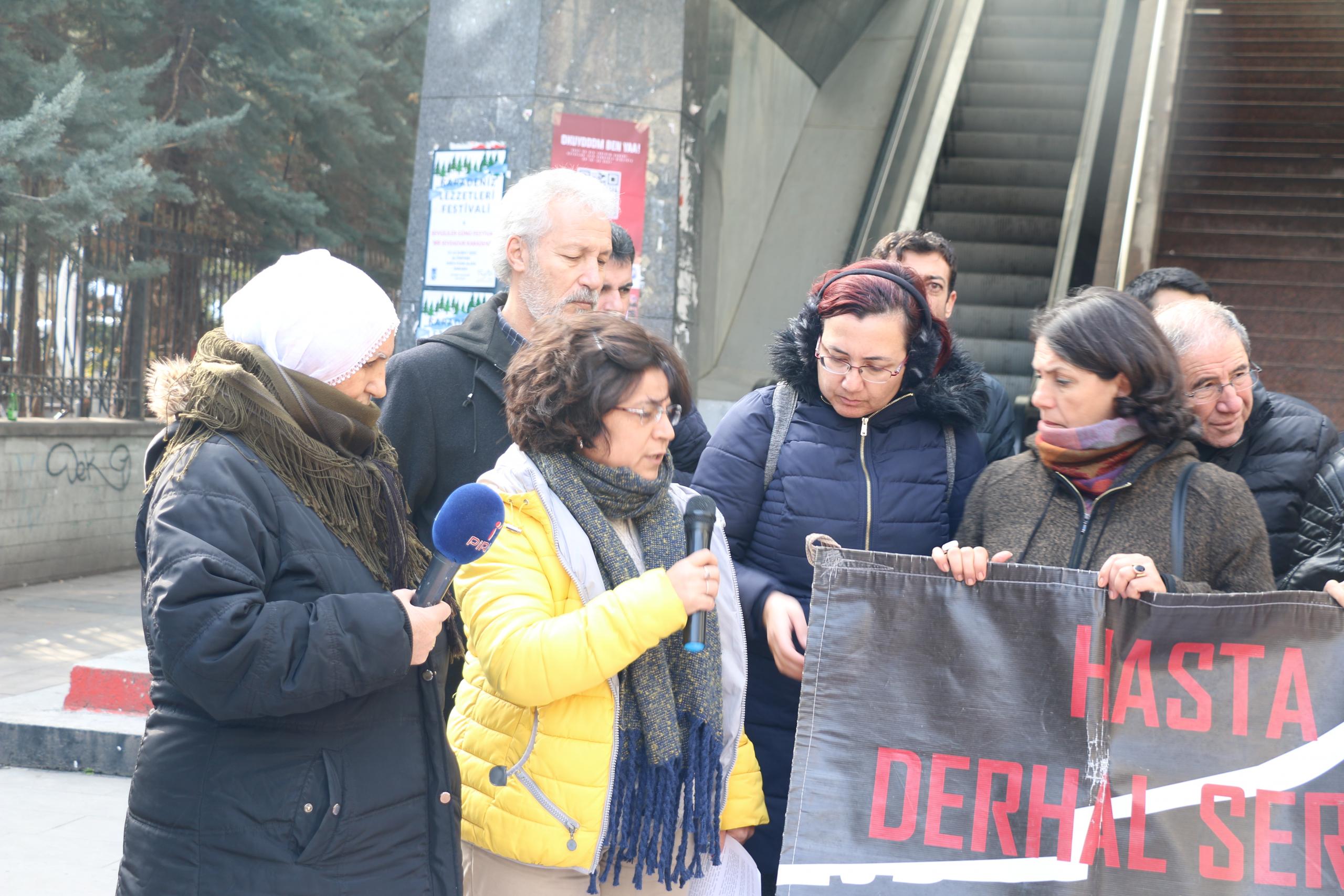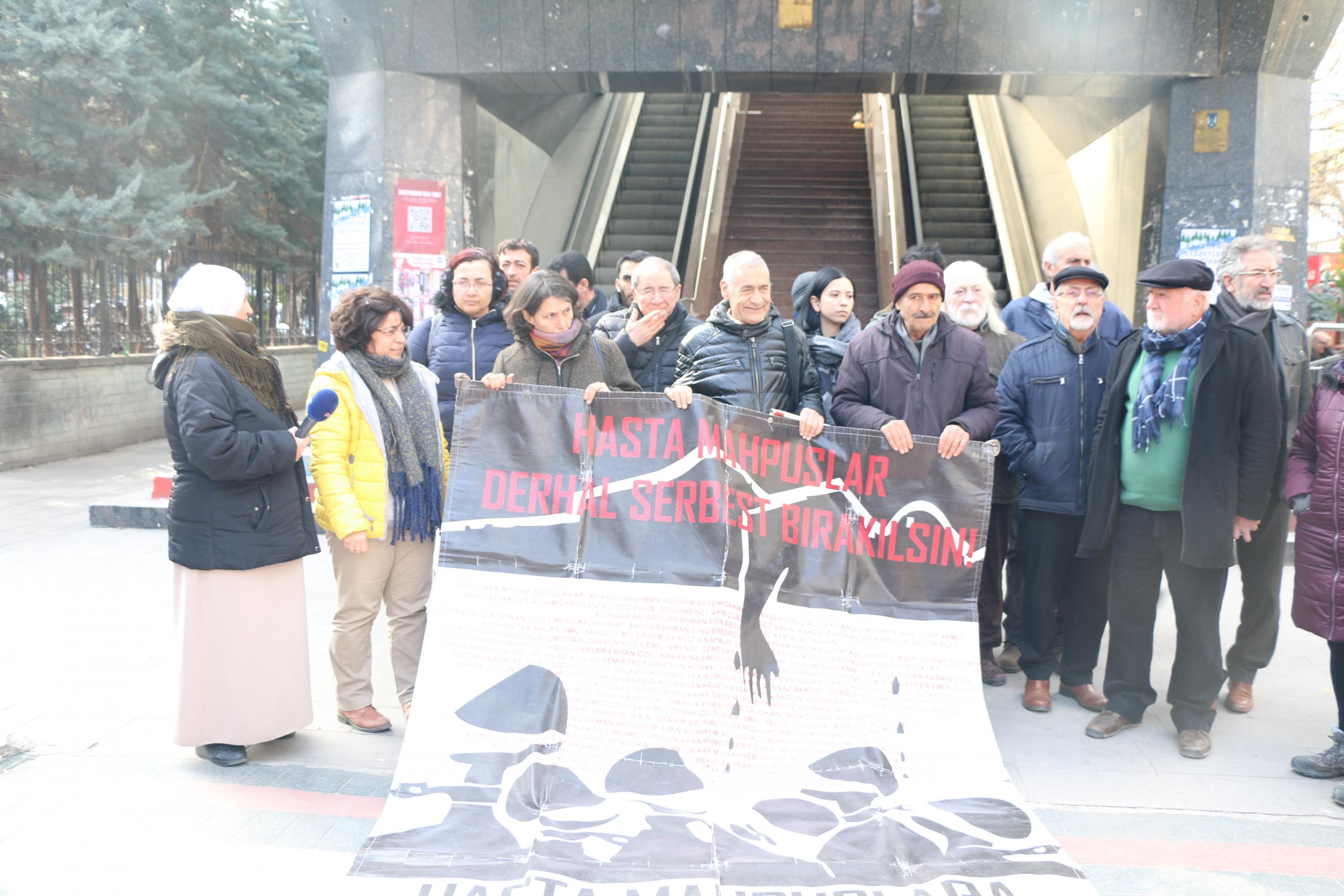 İHD Ankara Şubesi Hasta Tutsaklar inisiyatifi 284. haftasında Bolu F Tipi Kapalı Cezaevi’nde bulunan hasta mahpuslardan Mehmet Zeki Eşin’in durumuna dikkat çekti. İnisiyatif adına açıklamayı okuyan Nuray Çevirmen, her hasta tutuklunun tıbbi etik gereği mahremiyetine saygı gösterilen bir ortamda, insan onuruna yakışır bir şekilde sağlık hizmeti alma hakkının olduğunu söyledi.