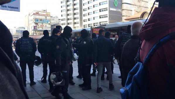 PİRHA – Sivas Katliamı hükümlüsünün Cumhurbaşkanı tarafından affedilmesini protesto etmek için Pir Sultan Abdal Kültür Derneği Ankara Şubesi önünde toplanan Aleviler, Adalet Bakanlığı önüne gitmek için hazırlanıyor. Ancak dernek polis ablukası altında.