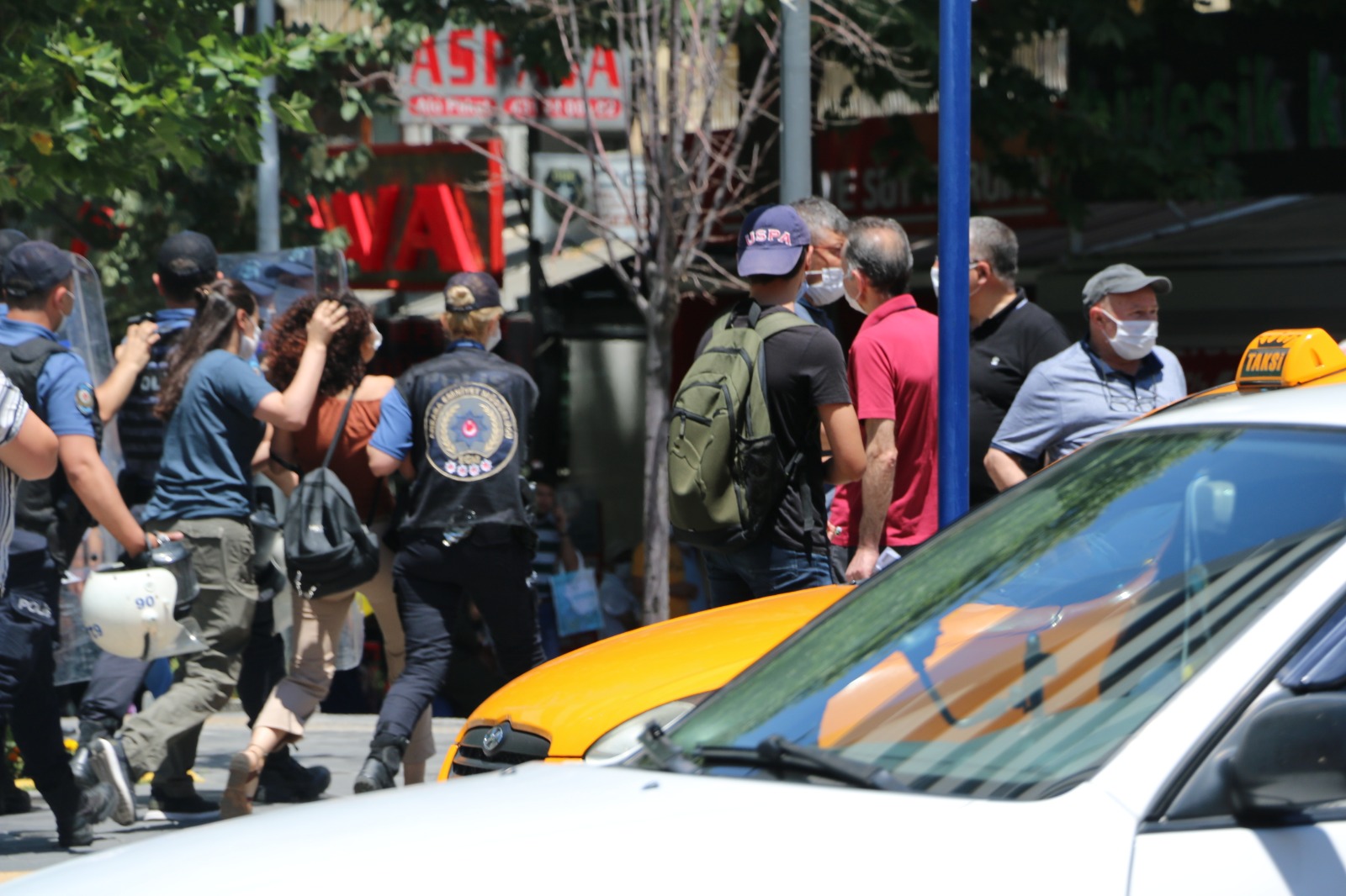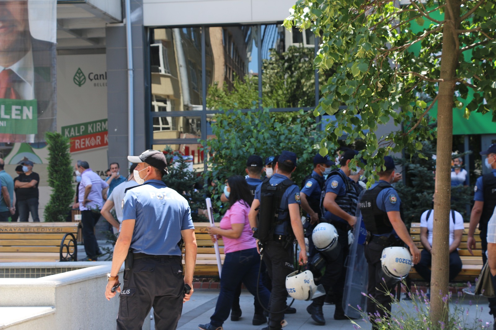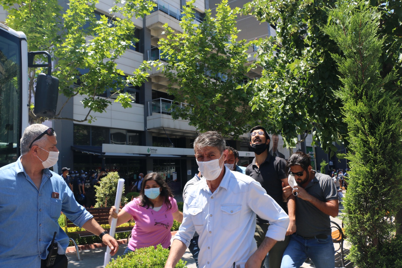 Polis, HDP’li Murat Çepni’nin aralarında olduğu kitleyi zor kollanarak alandan uzaklaştırdı. Çok sayıda gözaltının yapıldığı alanda polis basının çekim yapmasına izin vermeyerek alandan uzaklaştırdı.