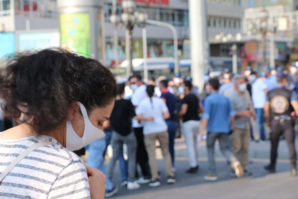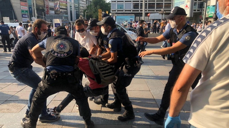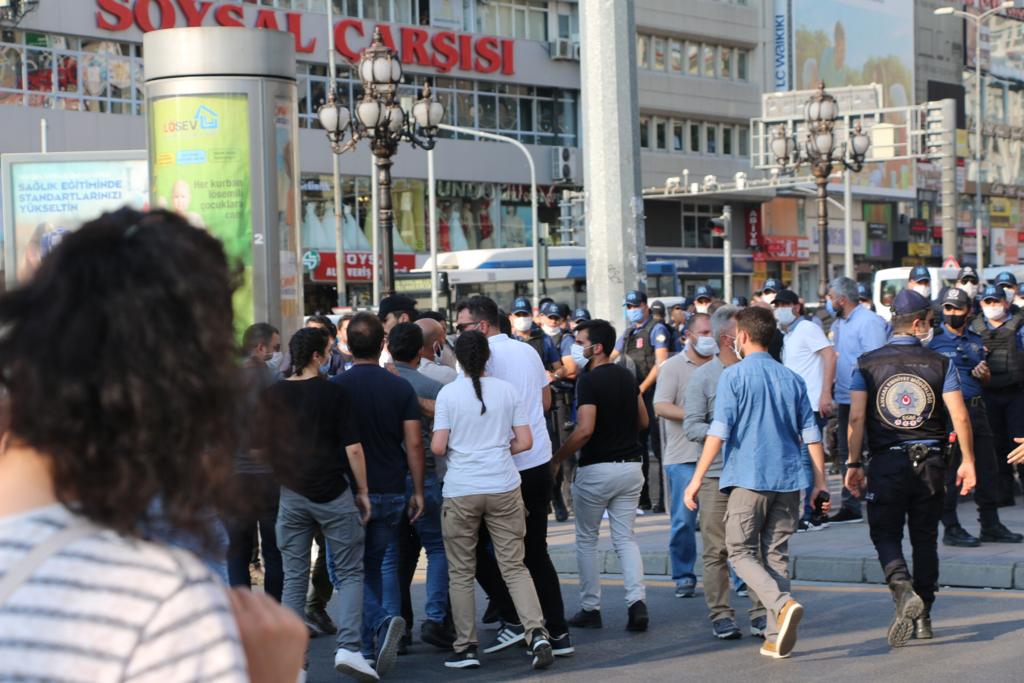 Meşrutiyet Caddesi’nin Konur Sokak’ın kesiştiği yerde gençler açtıkları pankart ile yürümek istedi. Önleri çevik kuvvet polisleri tarafından kesilen gençlere polis biber gazı ve plastik mermi ile müdahale etti.