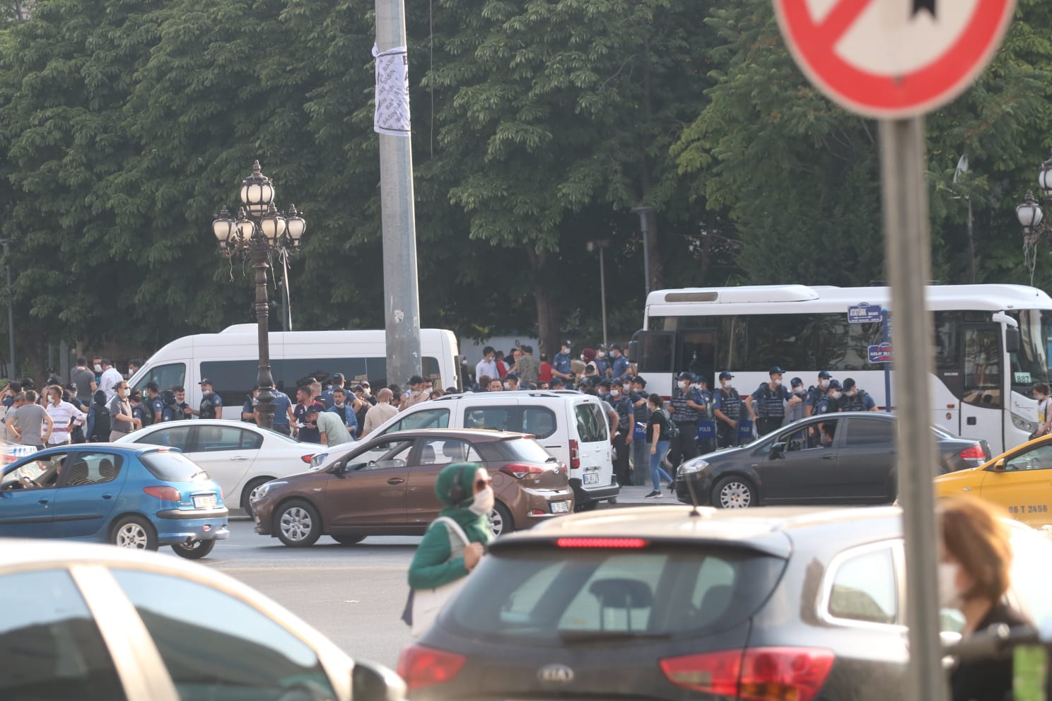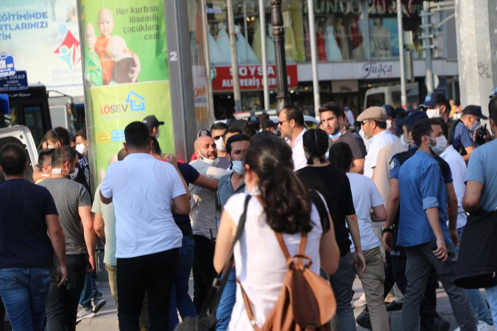 Polis, gençleri yere yatırarak ve darp ederek gözaltına alırken, gençler sık sık “Suruç İçin Adalet” sloganları atıldı. Gençlerin açtığı “Suruç İçin Adalet, Herkes İçin Adalet” pankartı da polis tarafından yırtıldı. Yaşamını yitirenlerin fotoğrafları da polis tarafından yırtıldı. Çok sayıda kişi gözaltına alındı.