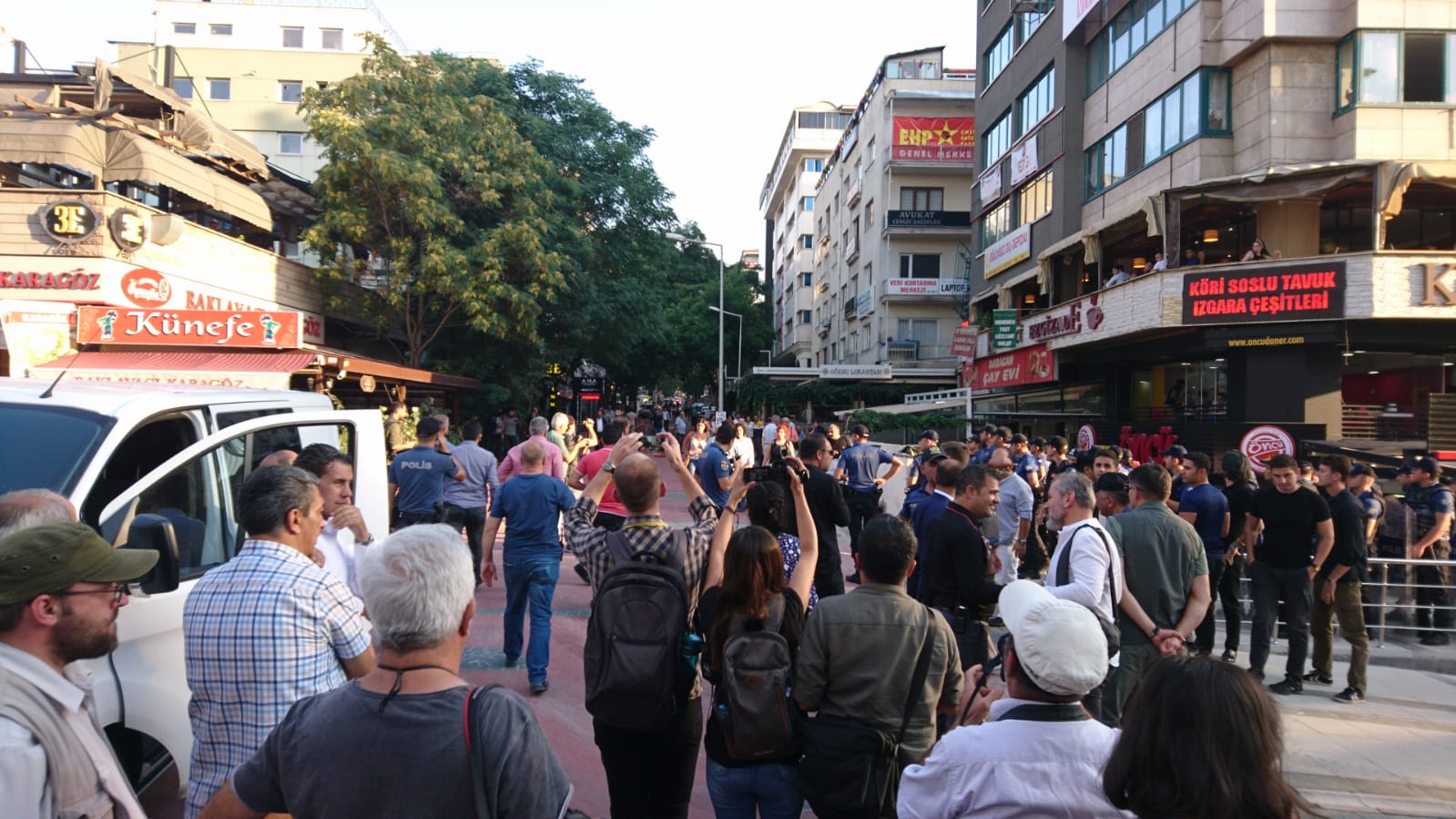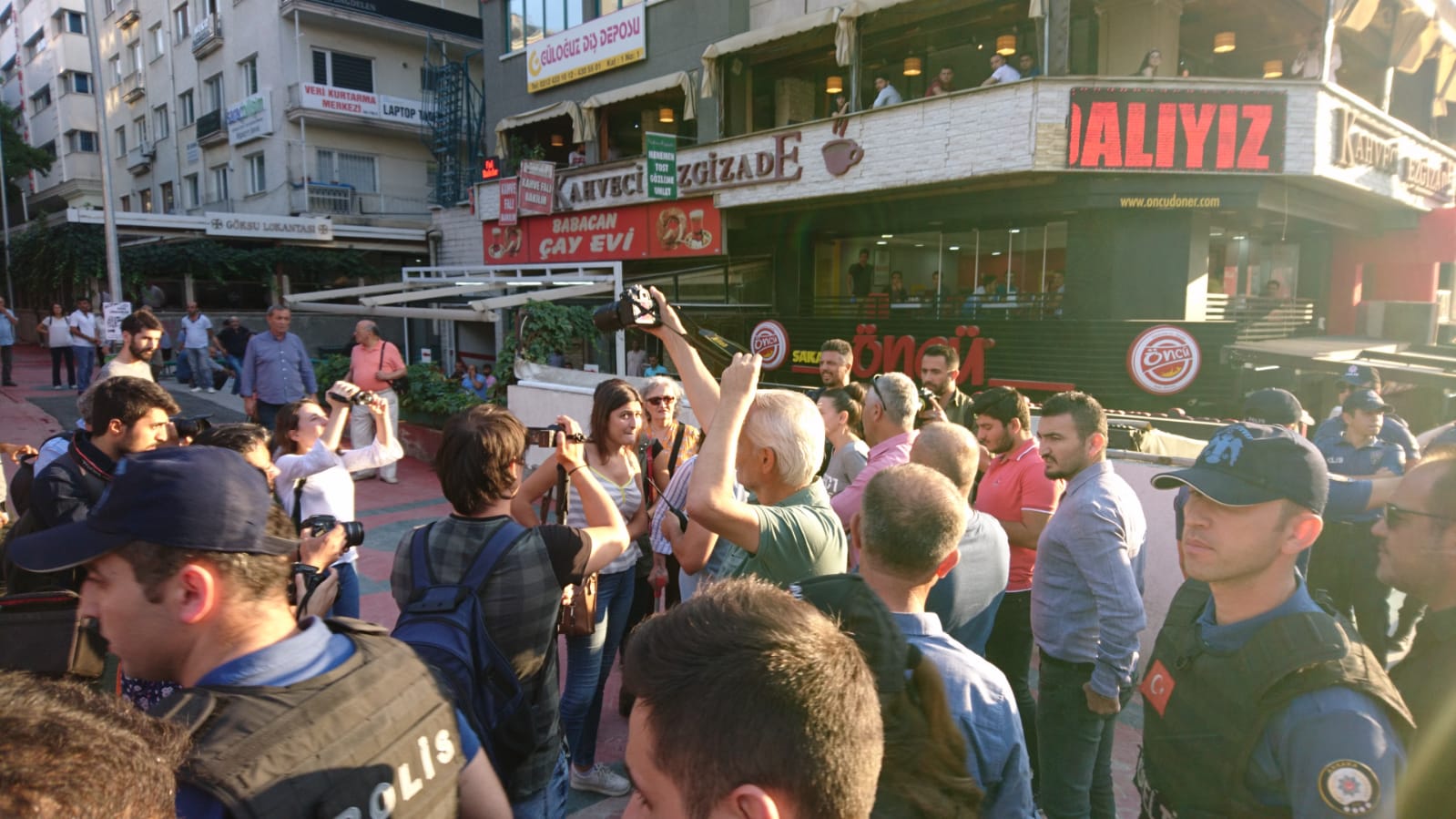 Eylemcilerin gözaltına alınması ardından çevrede bulunan tüm yurttaşları da sokaktan çıkarmaya çalışan polisler kalkanlarla ilerledi. Bu sırada eyleme gelen Kanun Hükmünde Kararname (KHK) ile ihraç edilen ve bir kolunu cezaevindeki müdahalede kaybeden Veli Saçılık, “Bakın görüyorsunuz polis devleti var artık. Bizimle eve kadar gelecekler sanırım. Bizimle yürüyorlar bakın” diyerek, tepki gösterdi. Saçılık bu konuşması üzerine polisler tarafından yaka paça gözaltına alındı.