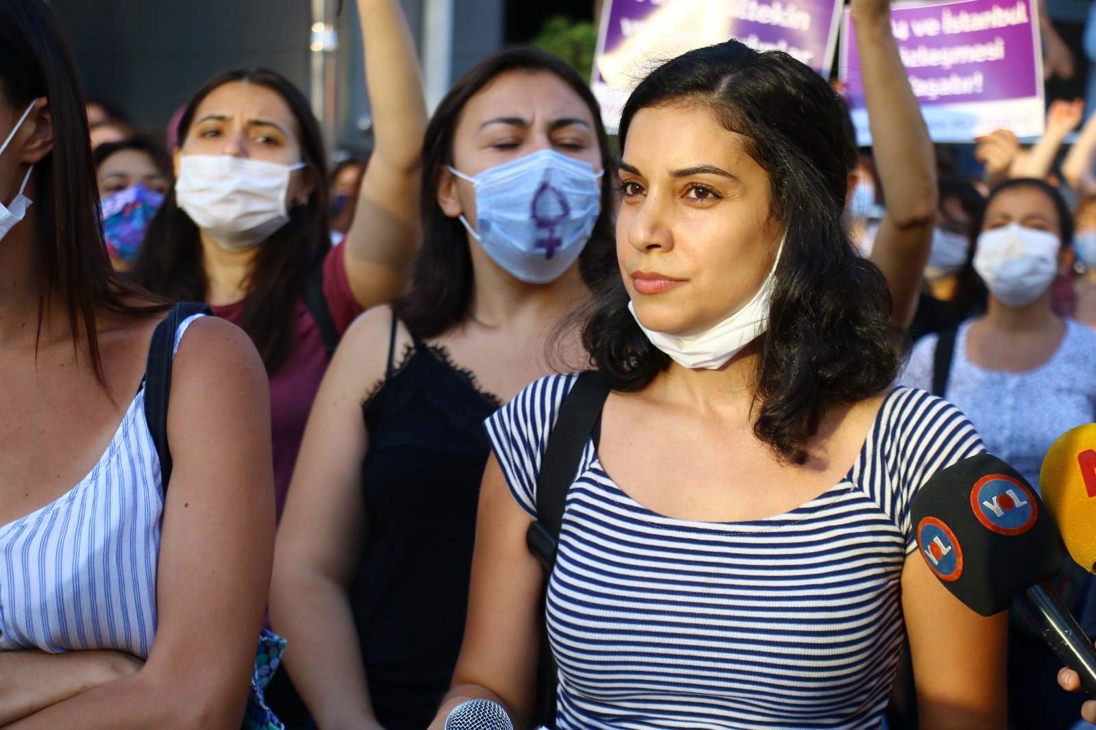 İstanbul Sözleşmesi’nin kadınların uzun zamandır mücadele sonucu elde ettiği bir kazanım olduğunu belirten Kurtdere, “Kadına yönelik şiddetle mücadelede en etkin yasa iken bunu uygulayacağınız yerde kaldırmayı düşünüyorsunuz. Oysa İstanbul Sözleşmesi, hukuki güvencemizdir. İstanbul Sözleşmesini hedef alıp Sözleşmeden çekileceğini söylemek kadına yönelik şiddeti teşviktir. Sesimizin duyulması için daha kaç kadının ölmesi gerek? Bu kadın cinayetlerinin faili sadece öldüren erkekler değil, onca uyarımıza rağmen İnfaz Yasasıyla bu erkekleri salıverirken hiçbir önlem almayan, kadın örgütlerini görmezden gelen hatta bununla yetinmeyip kreminize eden yetkililerdir. Ama hayatlarımızı ailenin bütünlüğüne feda edilebilir görenler çok yanılıyor. Biz kadınların susmaya, itaat etmeye, birbirimizi yalnız bırakmaya, şiddetle yaşamaya ya da canımızdan olmaya niyetimiz yok, çok zamandır yok!” diye konuştu.