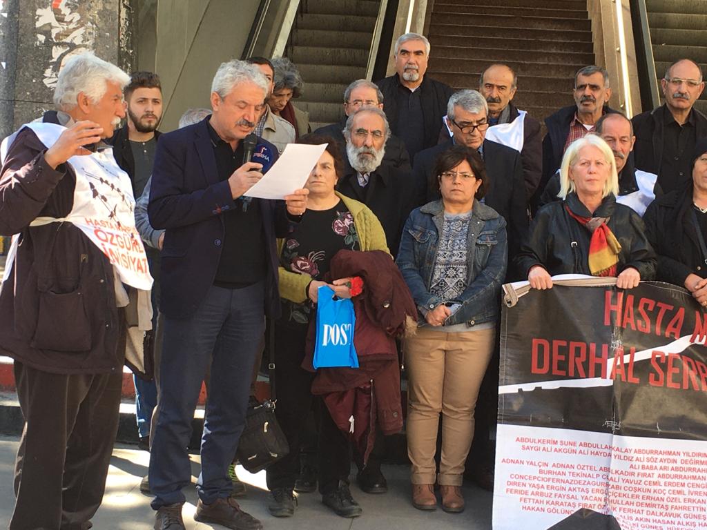 Her gün durumu ağırlaşan ve yürümemez halde olan hasta tutuklu Engin Aydınalp’in cezasının ertelenmesi ve serbest bırakılması çağrısı yapan Kanat, tüm hasta tutuklular serbest bırakılıncaya kadar mücadele edeceklerini söyledi.