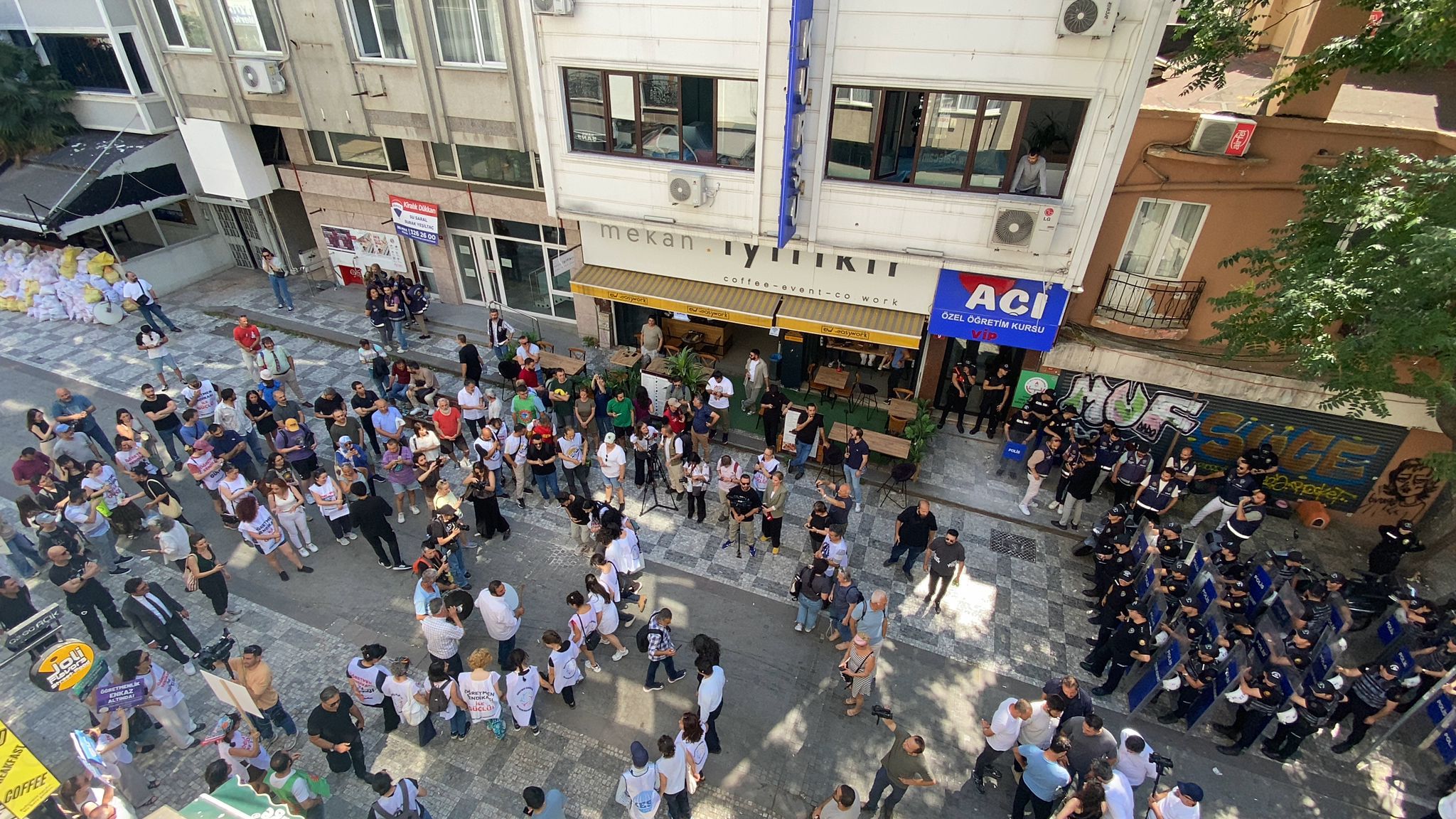 İstanbul’da sendika genel merkez binası önünde bir araya gelen öğretmenler, önce basın açıklaması yapacaklarını belirtti. Ancak kolluk güçleri, öğretmenlerin olduğu alanı barikatlarla çevirdi. Yapılan müzakere ardından öğretmenler, eylemlerine devam edebildi.