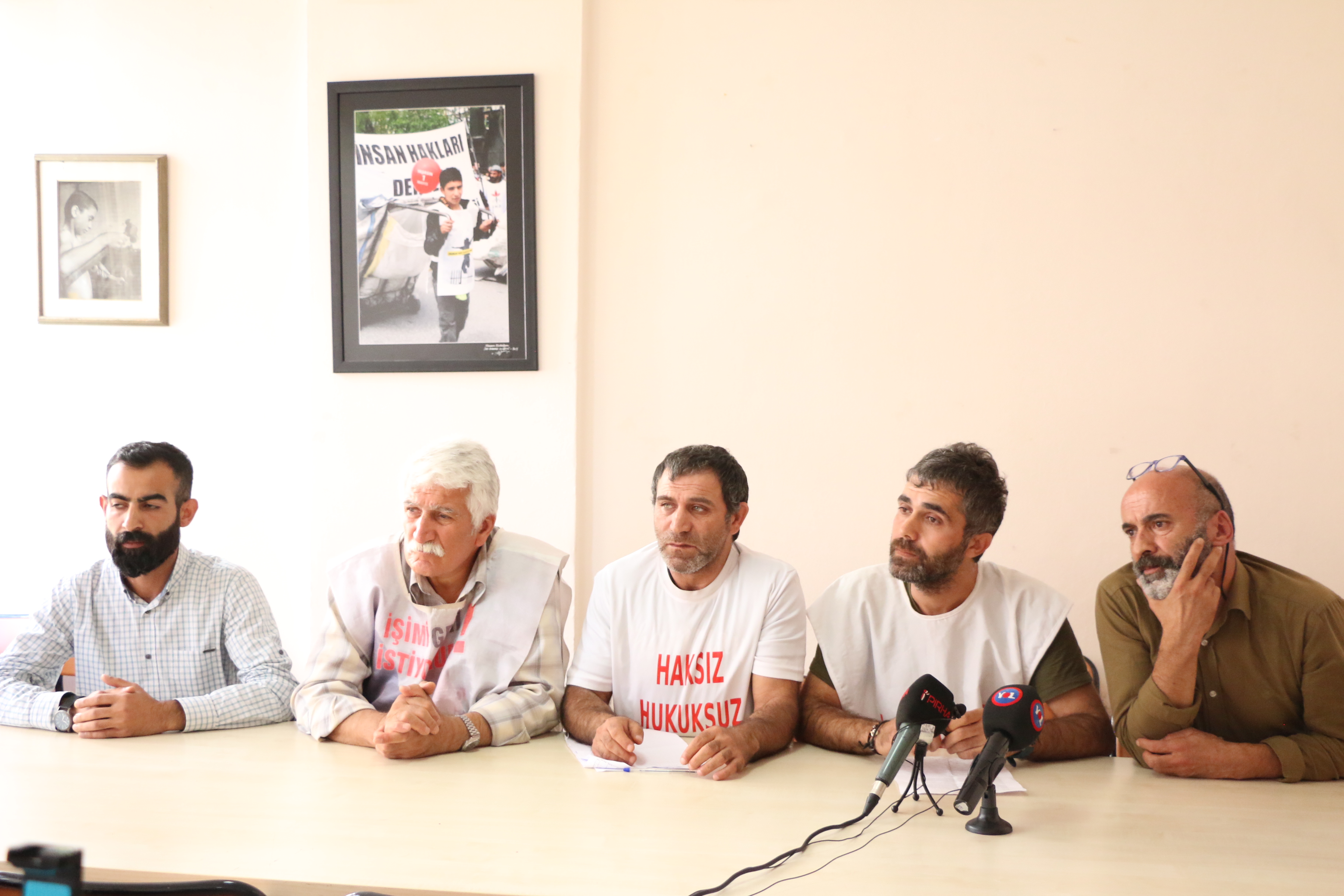 PİRHA- Kanun Hükmünde Kararname (KHK) ile çalıştıkları işten atılan ve işlerine geri dönmek için İstanbul’dan Ankara’ya yürüyüş gerçekleştiren Kenan Güngördü, Mazlum Çetinkaya, Arkadaş Canpolat ile Sinan Yerdelen adlı işçiler, İnsan Hakları Derneği (İHD) Ankara Şubede basın toplantısı gerçekleştirdi.