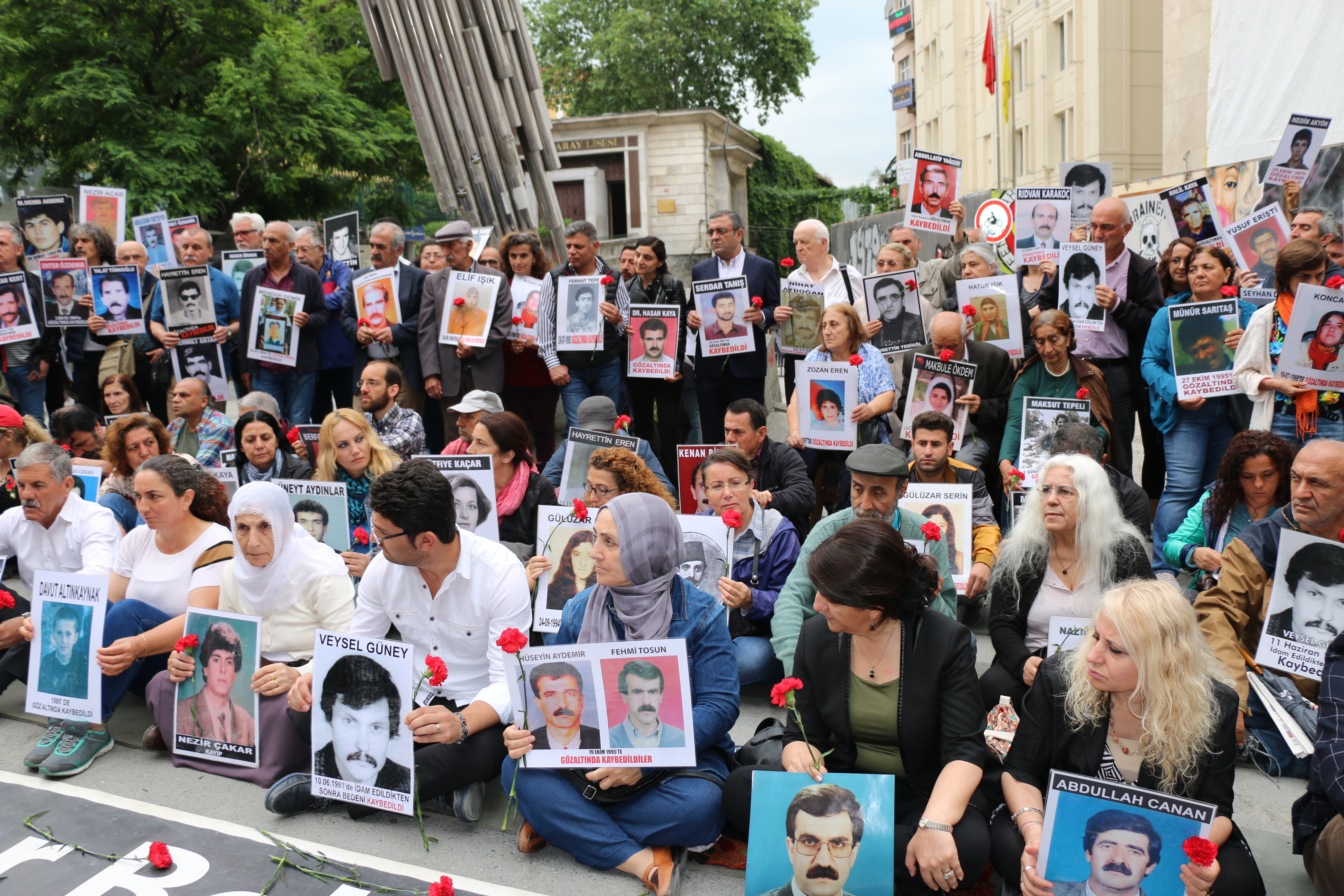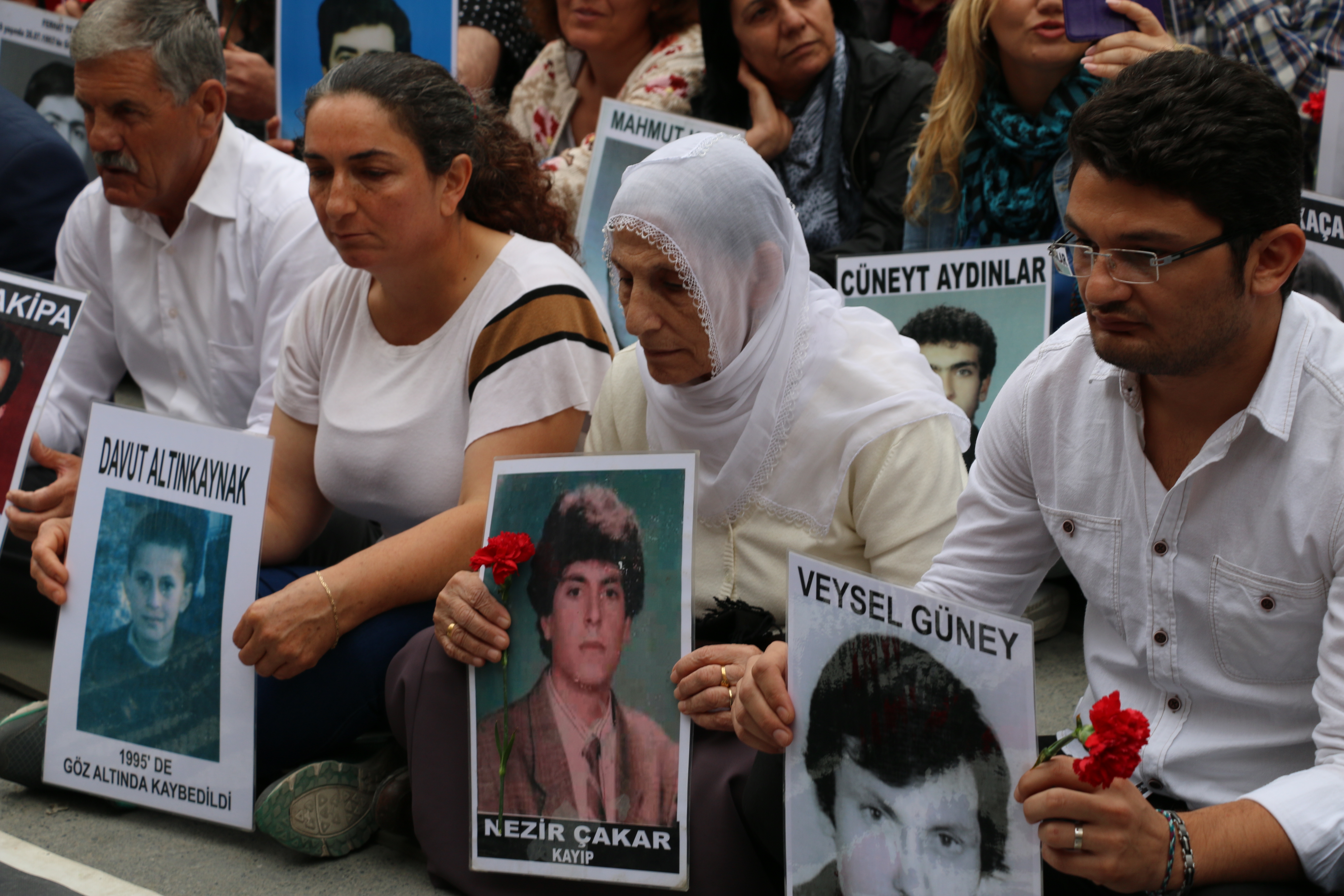 HDP İstanbul Milletvekili Pervin Buldan, CHP Milletvekili Sezgin Tanrıkulu, sanatçı Pınar Aydınlar kayıp yakınlarının katıldığı eylemde “Failler belli kayıplar nerede?” pankartı açılarak üzerine kayıpların resimleri, kırmızı karanfiller ve barışı temsilen beyaz tülbentler kondu.