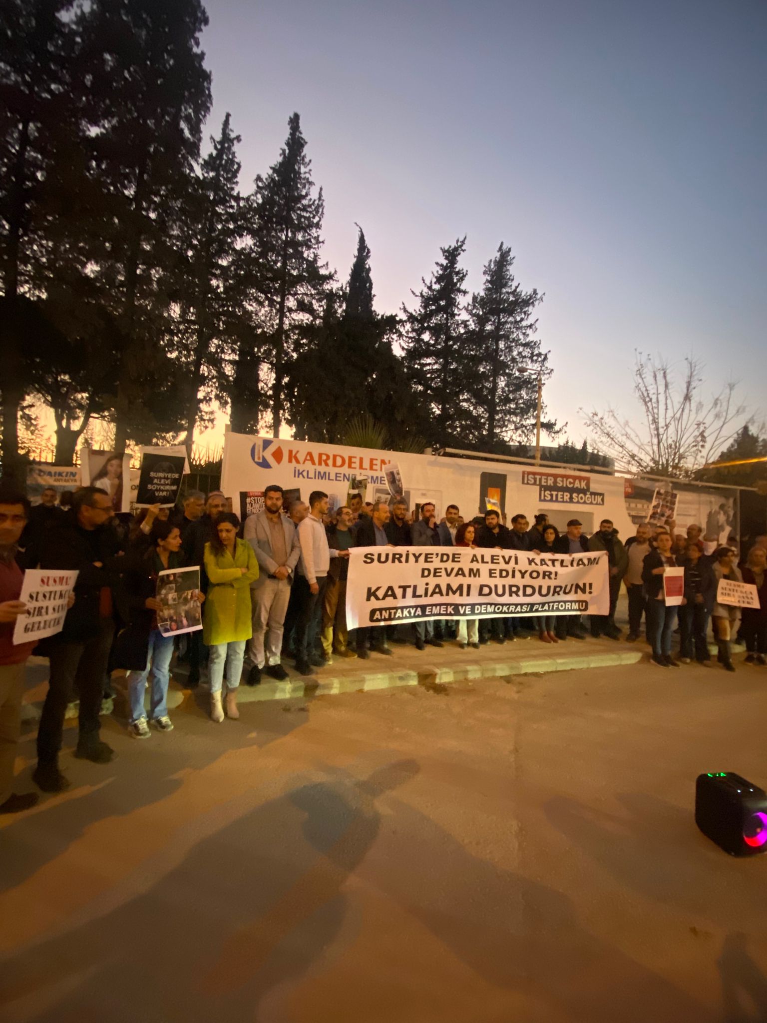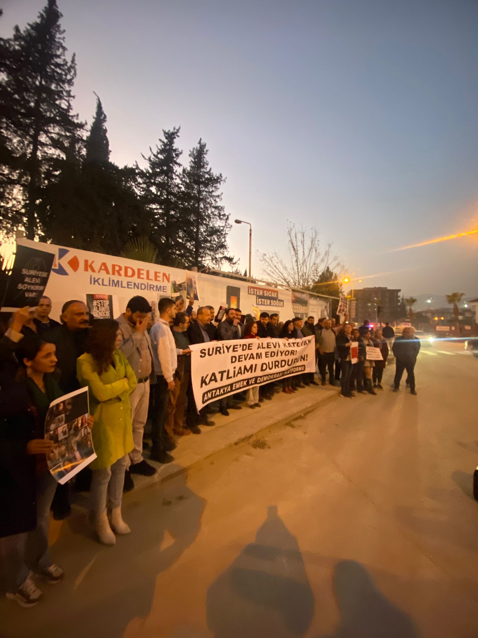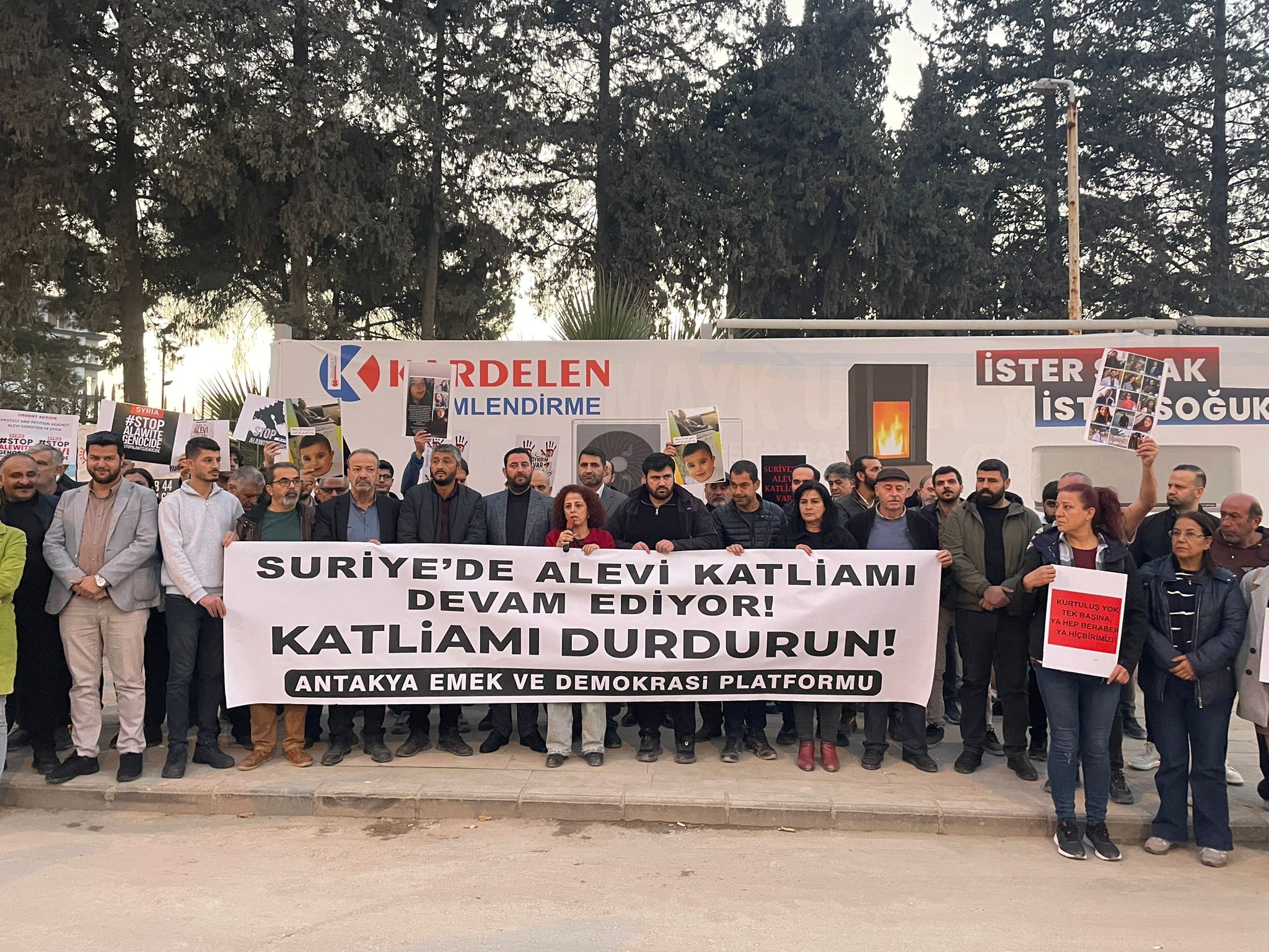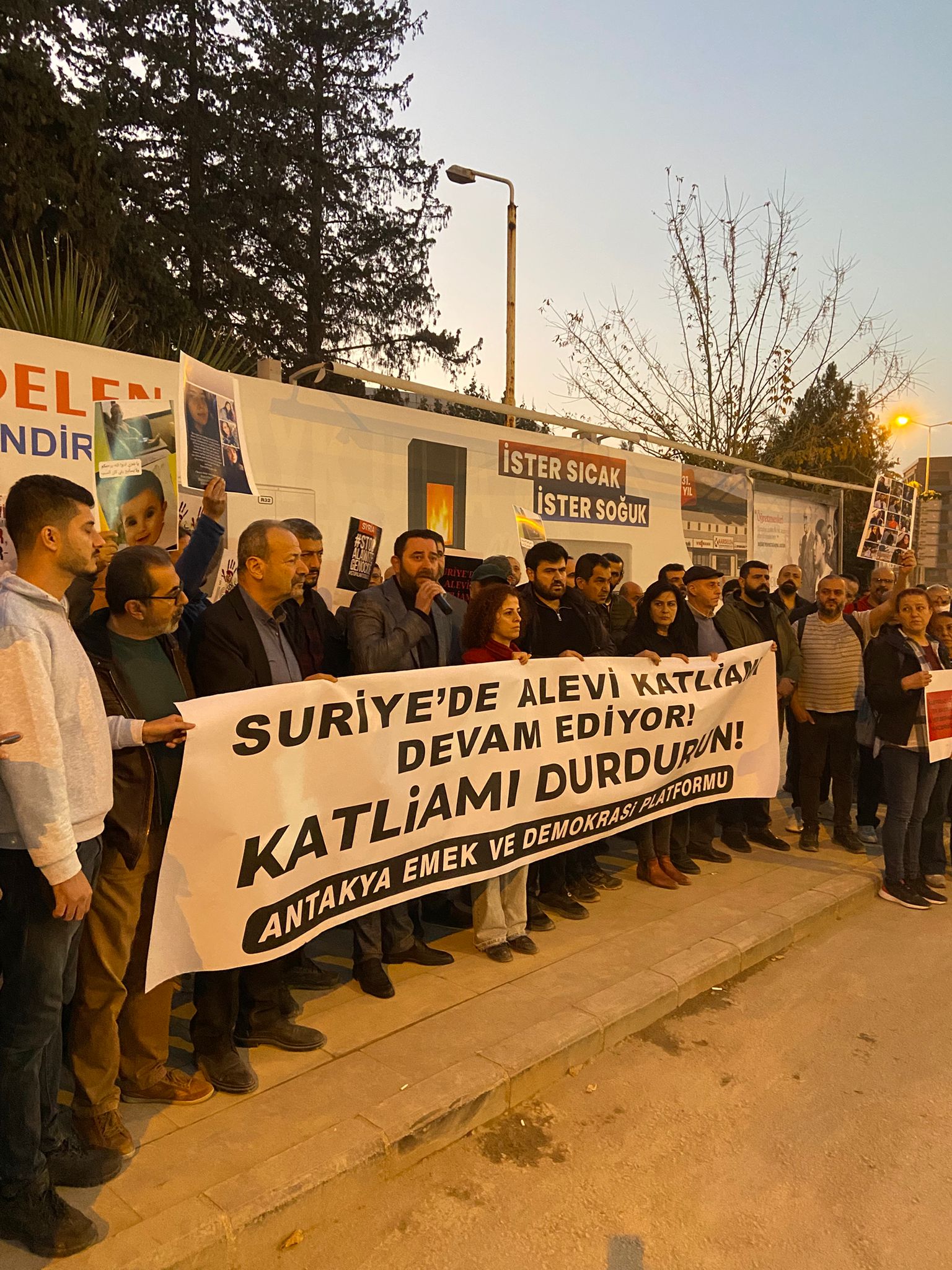 PİRHA- Suriye’deki Alevi katliamı Antakya’da protesto edildi. Antakya Emek ve Demokrasi Platformu’nun çağrısıyla bir araya gelen yurttaşlar, “BM, AB ve uluslararası insan hakları kuruluşlarına acil harekete geçmeye, bağımsız bir heyetin bölgeye giderek soruşturma yürütmeli” çağrısı yaptı.