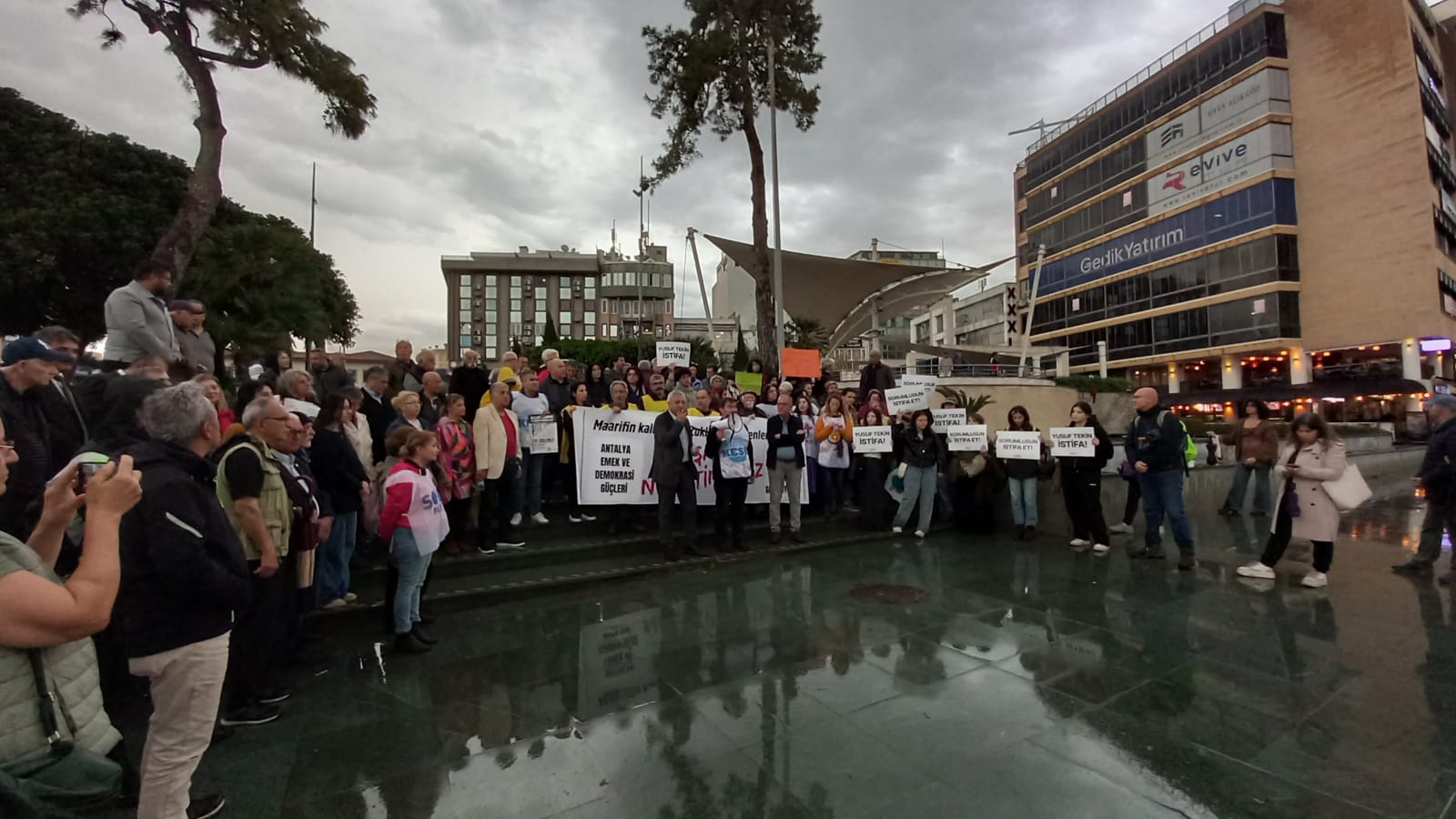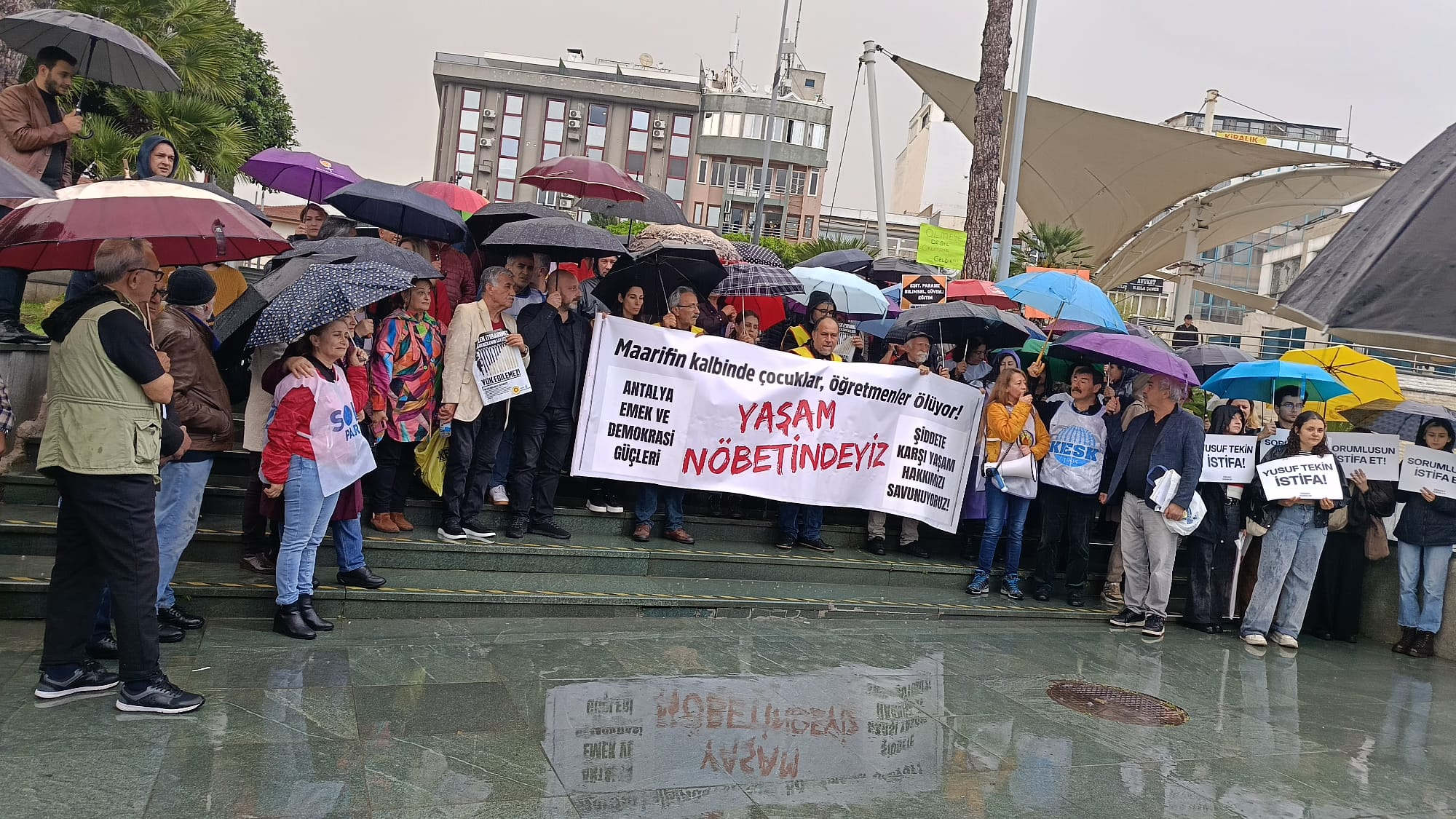 PİRHA- Şanlıurfa Siverek ve Kahramanmaraş’ta eğitim camiasına yönelik yaşanan ölümlü saldırılar, Antalya’da kitlesel bir eylemle protesto edildi. Antalya Emek ve Demokrasi Güçleri tarafından Cumhuriyet Meydanı’nda gerçekleştirilen “Yaşam Hakkı Nöbeti”nde, şiddetin sorumlusu olarak iktidarın politikaları gösterildi ve Milli Eğitim Bakanı istifaya çağrıldı.