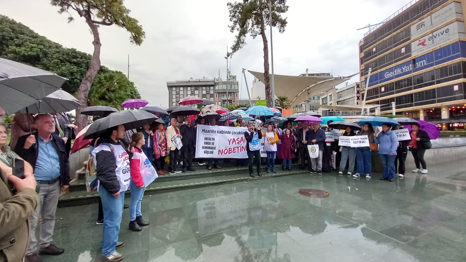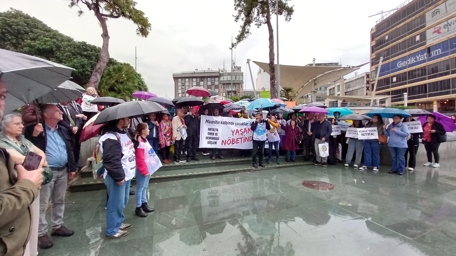 Antalya Emek ve Demokrasi Güçleri adına ortak açıklamayı Tüm Bel-Sen Antalya Şube Başkanı İlhan Karakurt okudu. Karakurt, okullarda yaşanan şiddetin münferit bir güvenlik zafiyeti olmadığını vurgulayarak, “Geleceğimizi emanet edeceğimiz gençlerimizin nasıl bu noktaya sürüklendiği sorusunun muhatabı, çeyrek asırdır ülkeyi yöneten iktidarın kendisidir” dedi.