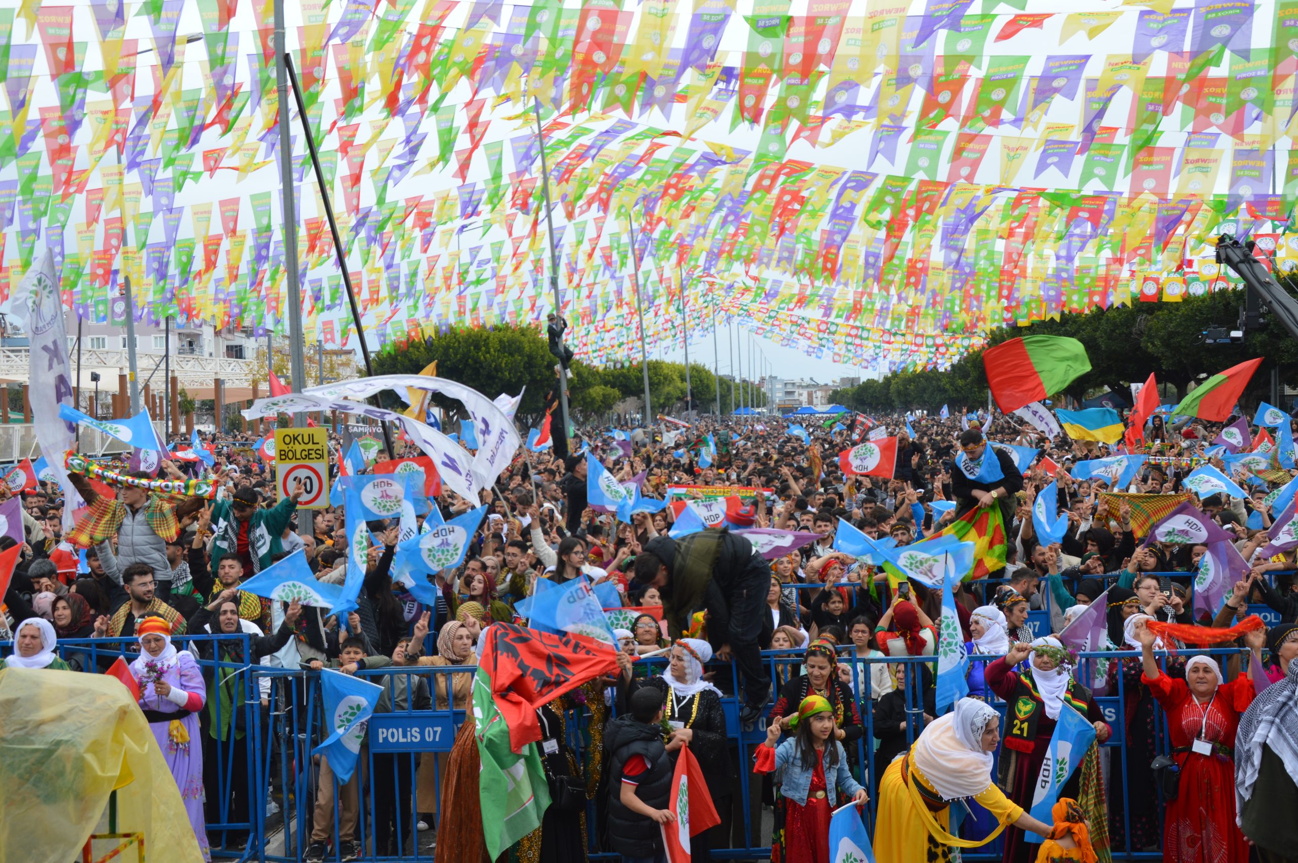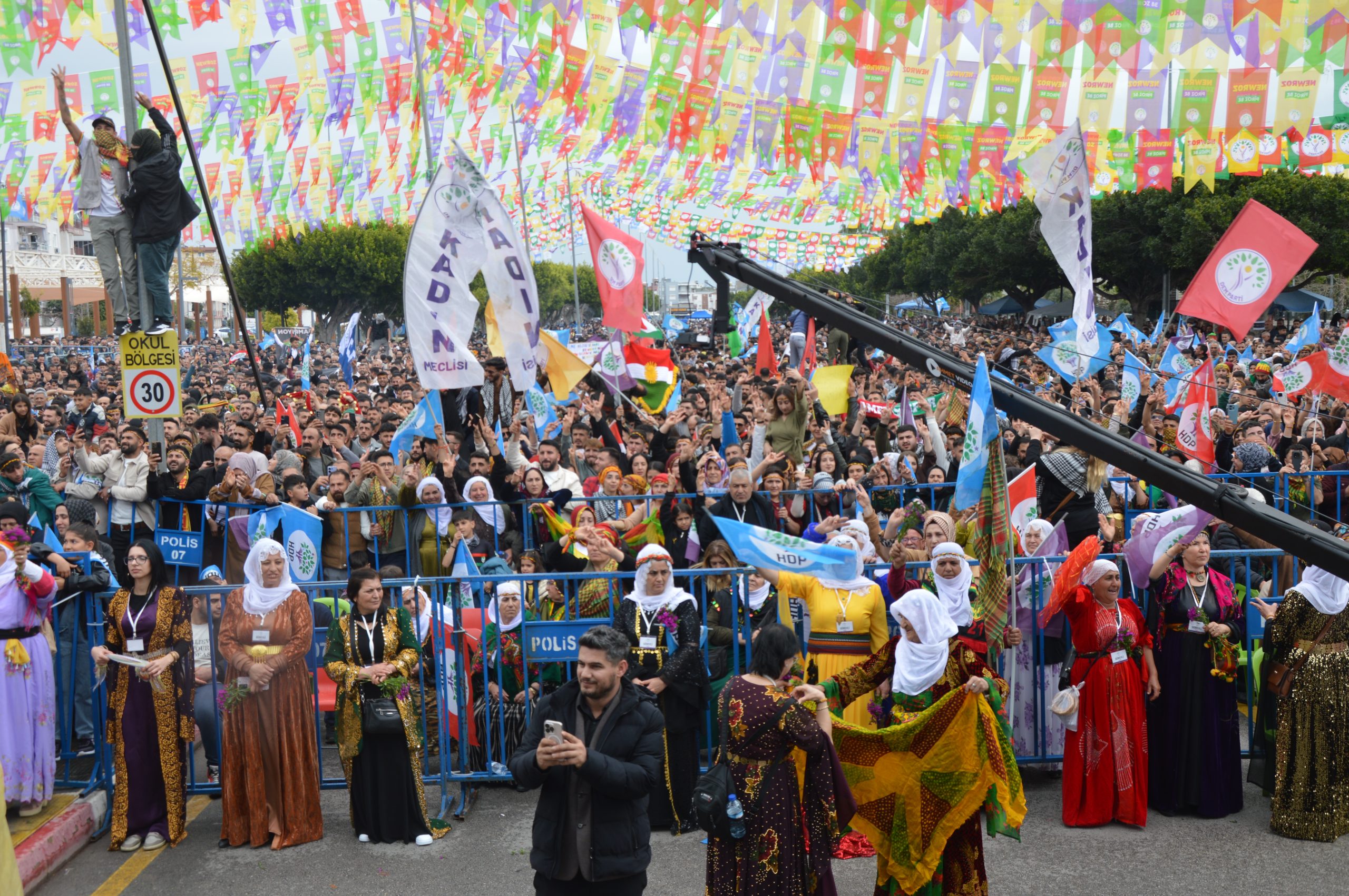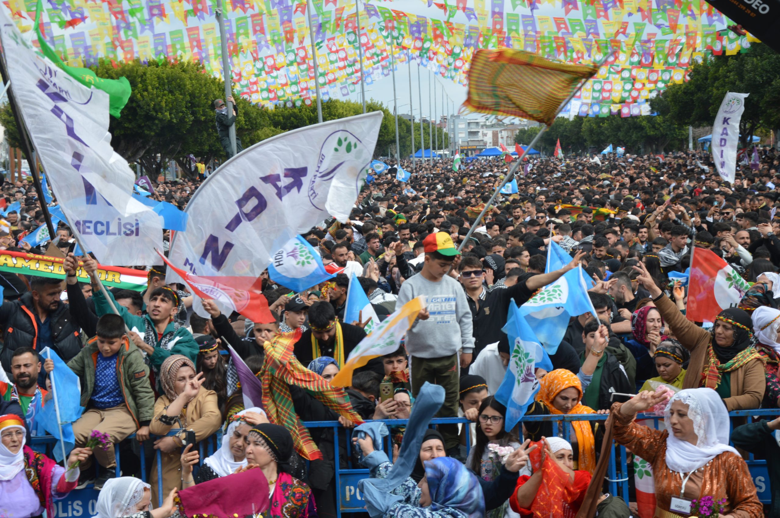 Antalya Kepez ilçesinde bulunan Kepez Kent Meydanında son 10 yılın en yüksek katılımlı Newroz kutlamasının gerçekleştiği alanda “jin jiyan azadî”, “Öcalan’a özgürlük” sloganlarının atıldığı saygı duruşu ile başlayan kutlamada DEM Parti İl Eş Başkanları Songül Şarklı ve Selami Özyaşar’ın konuşmalarının ardından program devam etti.
