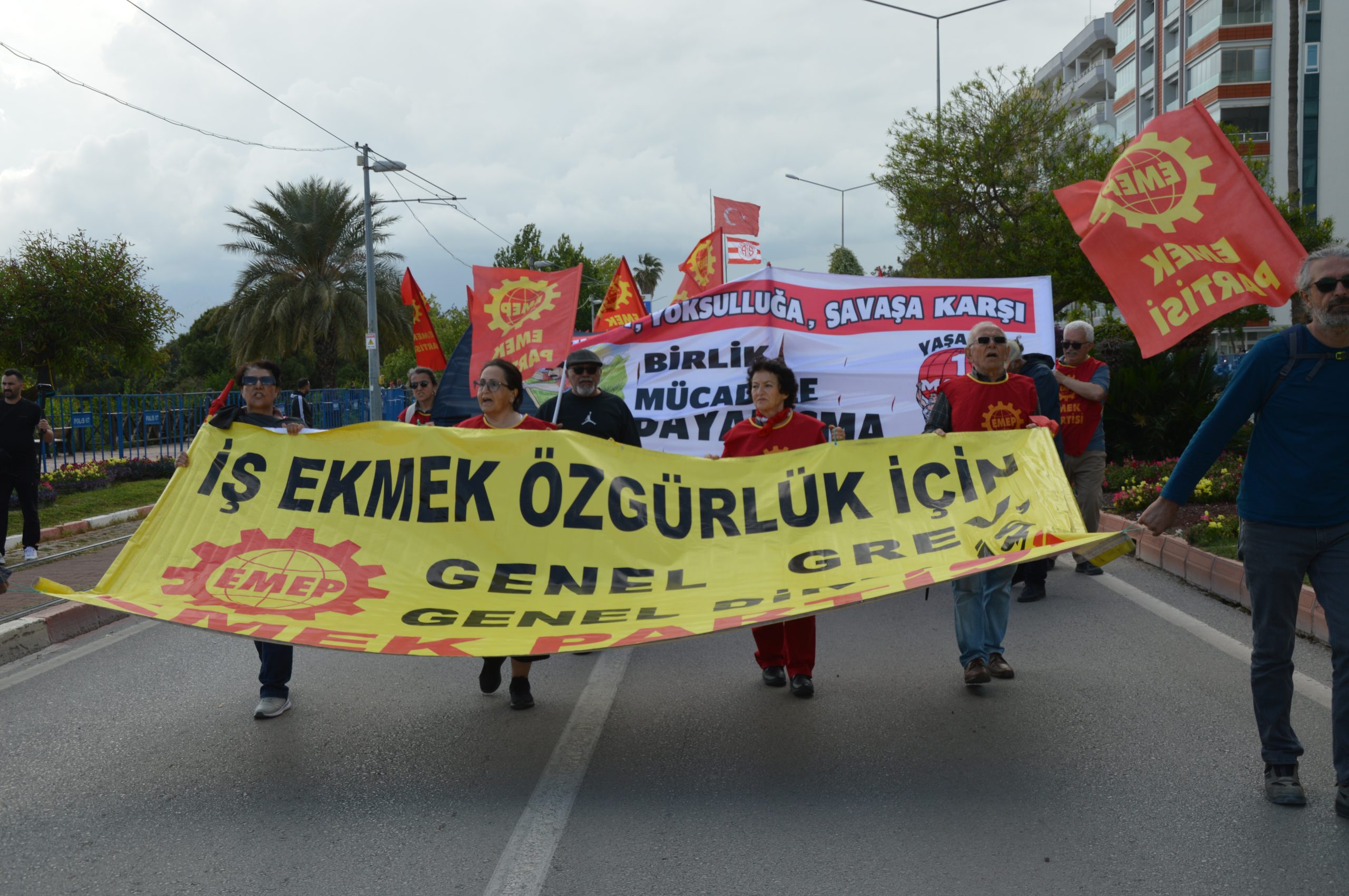Sabah saatlerinde işçisinden öğretmenine, öğrencisinden kadınına, doktorundan mühendisine kadar birçok emekçi Antalya’da eşit, özgür, laik, demokratik bir ülke için taleplerini sıraladı. Türkiye’de artan hayat pahalılığına, otokratik sisteme karşı herkes tek ses oldu.