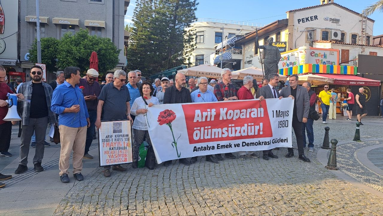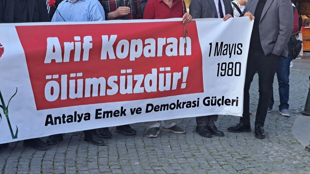 Açıklamada, 1 Mayıs’ın Türkiye tarihinde hem mücadele hem de yasaklar ve çatışmalarla anıldığı vurgulandı. 1980 yılında Antalya’da yürüyüş ve mitinglerin yasaklanmasına rağmen işçi, genç ve kadınların Muratpaşa Camisi önünden başlayarak Cumhuriyet Meydanı’na yürümek istediği hatırlatıldı. Kalekapısı civarında güvenlik güçlerinin müdahalesi sırasında açılan ateş sonucu Arif Koparan’ın hayatını kaybettiği ifade edildi.