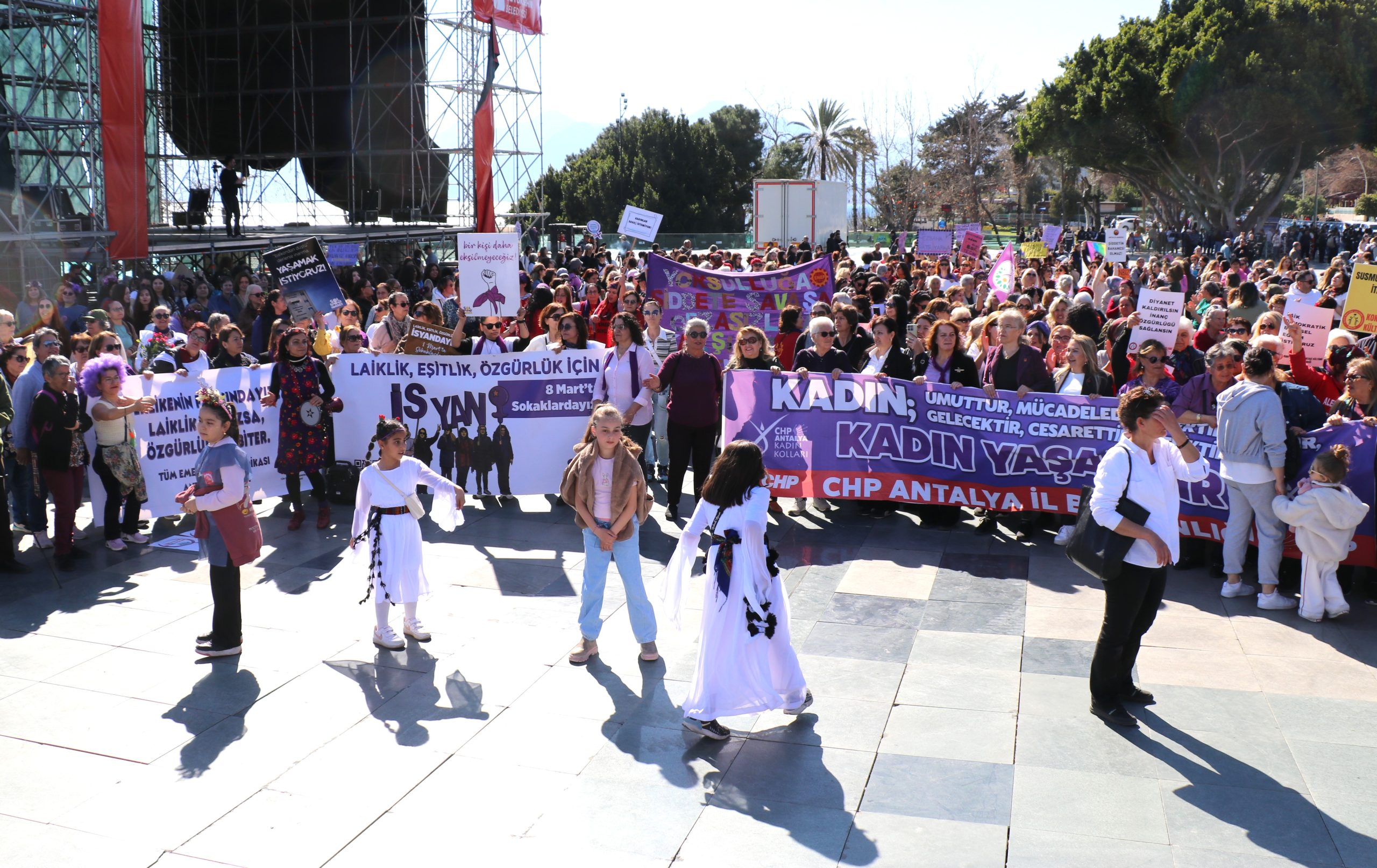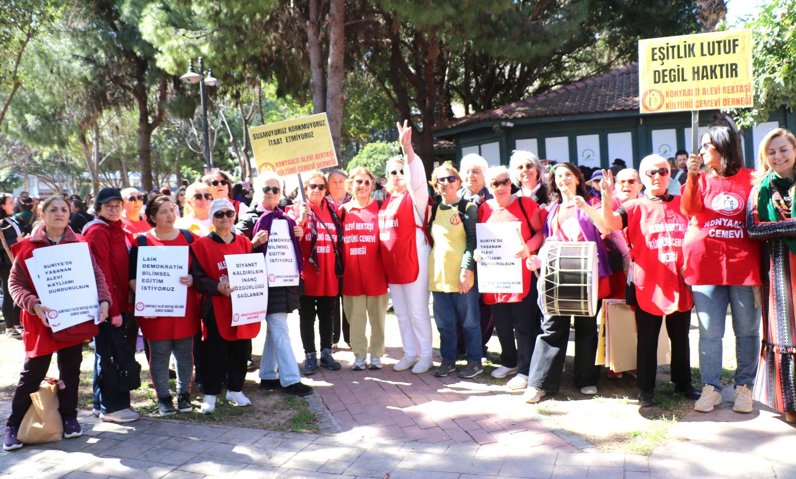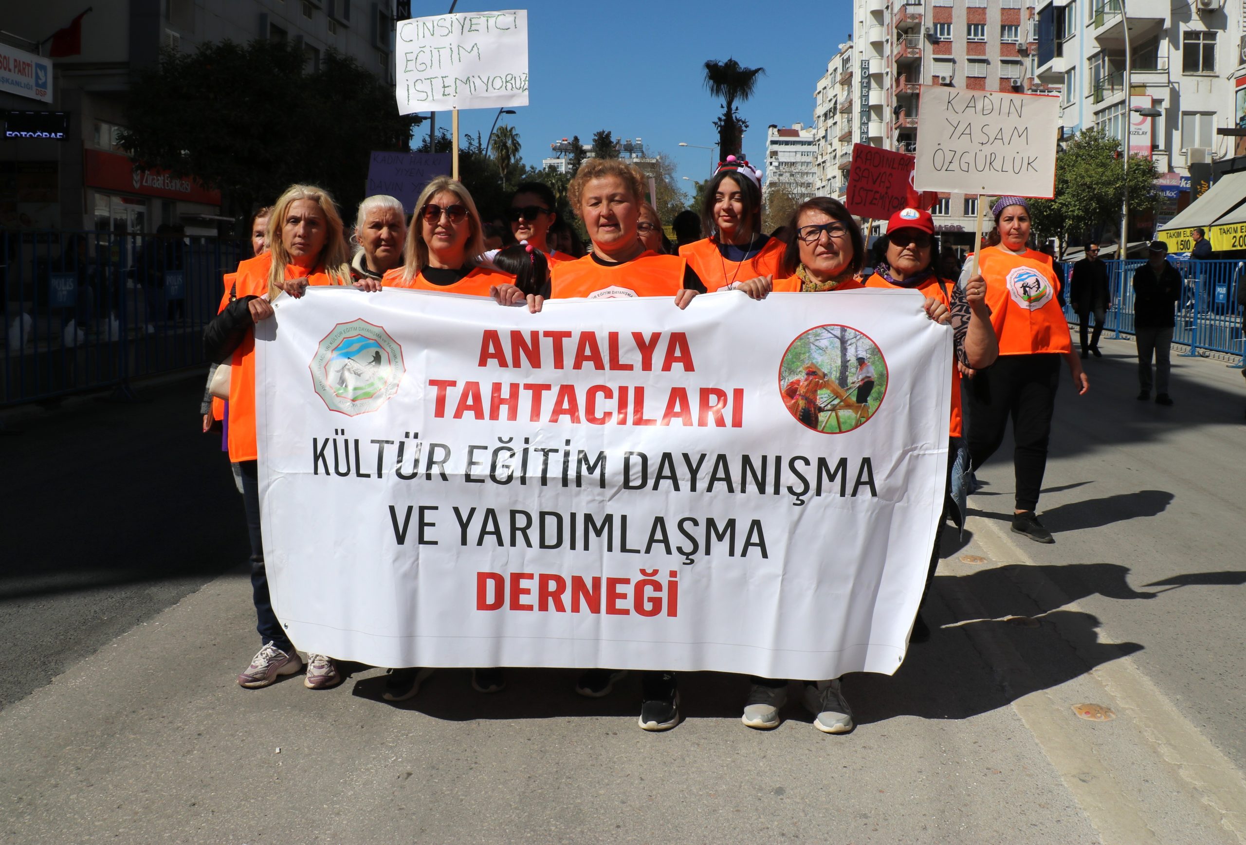 Kadınlar Türkiye ve dünyanın bir çok merkezinde hakları için sokaklara, meydanlara çıktı. Antalya’da Aydın Anza Parkında biaraya gelen kadınlar kortejler eşliğinde kadınlar Cumhuriyet Meydanı’nda yürüyüş gerçekleştirdi