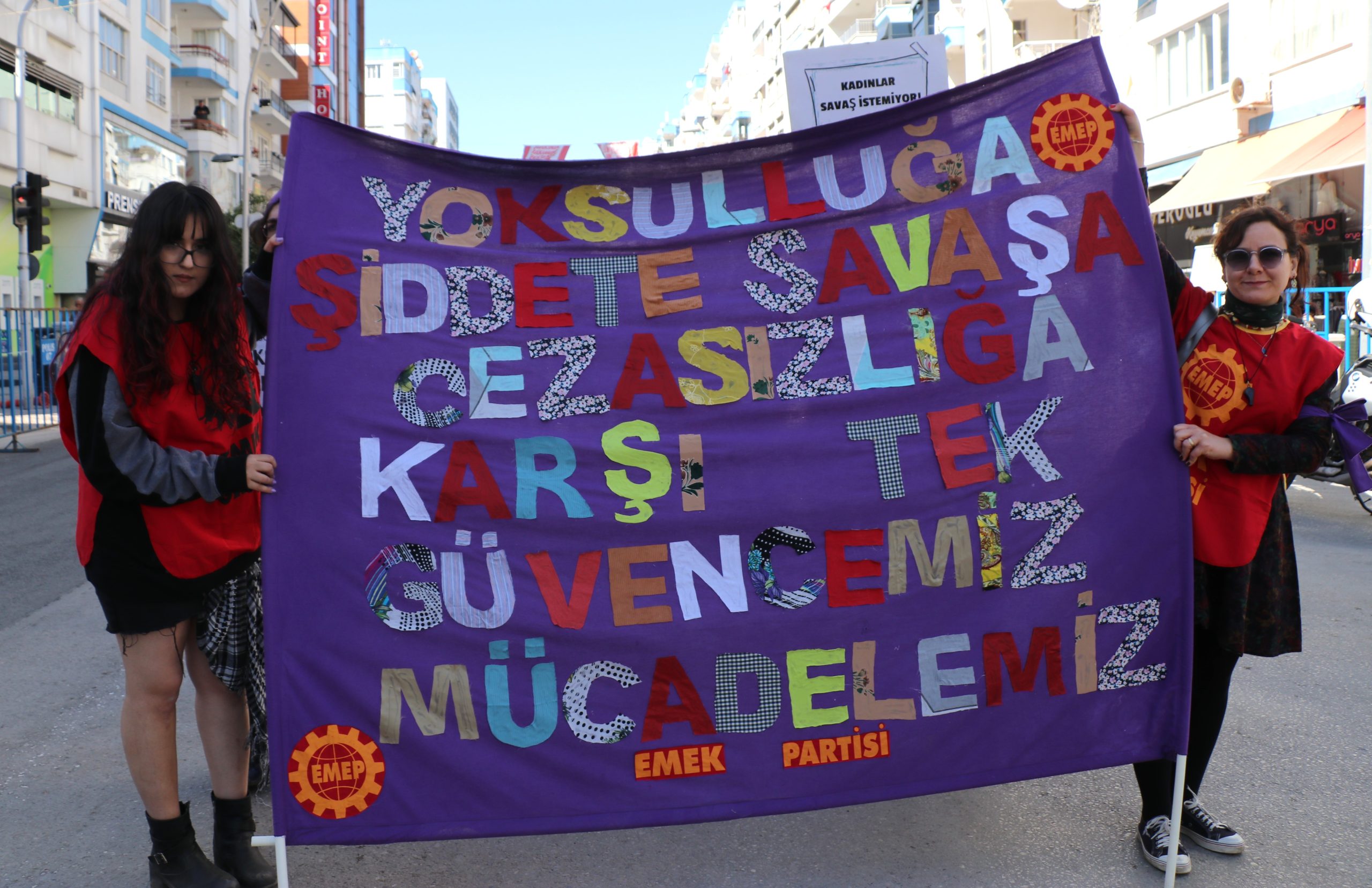 Militarizm büyüdükçe şiddet büyüyor, şiddet büyüdükçe kadınların yaşam alanı daralıyor. Silahlara ayrılan bütçelerin eğitime, sağlığa, sosyal haklara ayrıldığı bir dünya mümkün! Bu topraklarda ölüm değil hayat büyüsün diye, yıkım değil umut çoğalsın diye barışı savunmaya devam edeceğiz! Çünkü barış olmadan eşitlik olmaz! Barış olmadan özgürlük olmaz! Kadınlar özgürleşmeden dünya değişmez!”