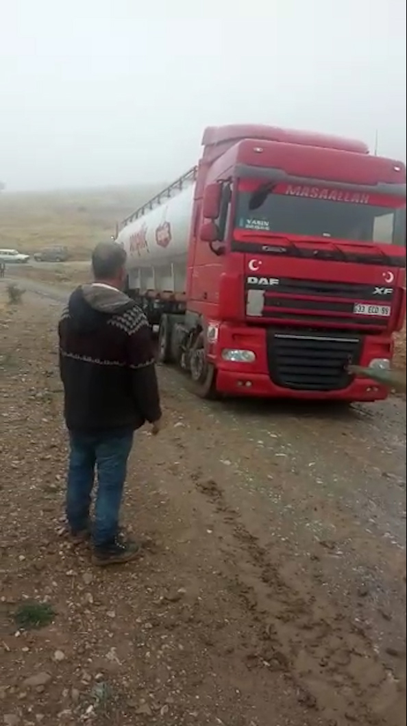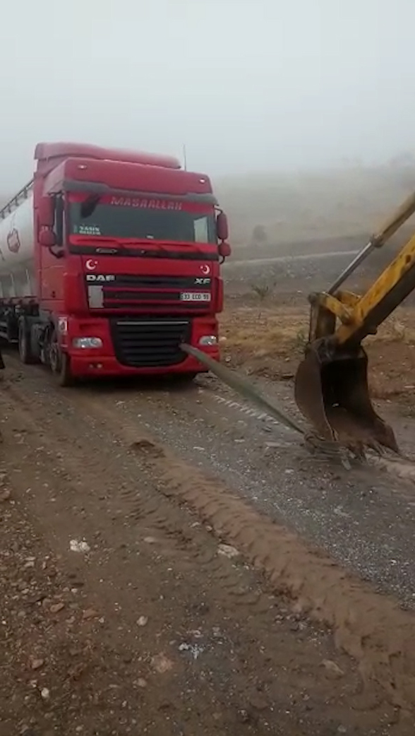 Yol üzerinde 15 ev ve 3 işletme bulunuyor. İşletmelere gitmek için yola düşen araç sahipleri yolda çamura saplanıyor. Bir firmaya ait kamyon ise nakliye için yol üzerinde bulunan işletme için yola çıktı fakat aralıksız devam eden yağışlar nedeniyle yollar çamur olmuş durumda. Çamurda çıkamayan kamyon şoförünün imdadına iş makinesi yetişti ve kamyonu bulunduğu yerden kurtardı.
