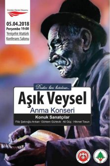 Sivrialan Mersin Oluşumu tarafından organize edilen konser, 5 Nisan Perşembe günü Saat 19.00’da Yenişehir Atatürk Konferans Salonu’nda gerçekleşecek. Konserde Aşık Veysel’in unutulmaz türkülerini Filiz Şatıroğlu Arıkan, Cem Gürlevik, Ali Güç, Hikmet Tosun seslendirecek.