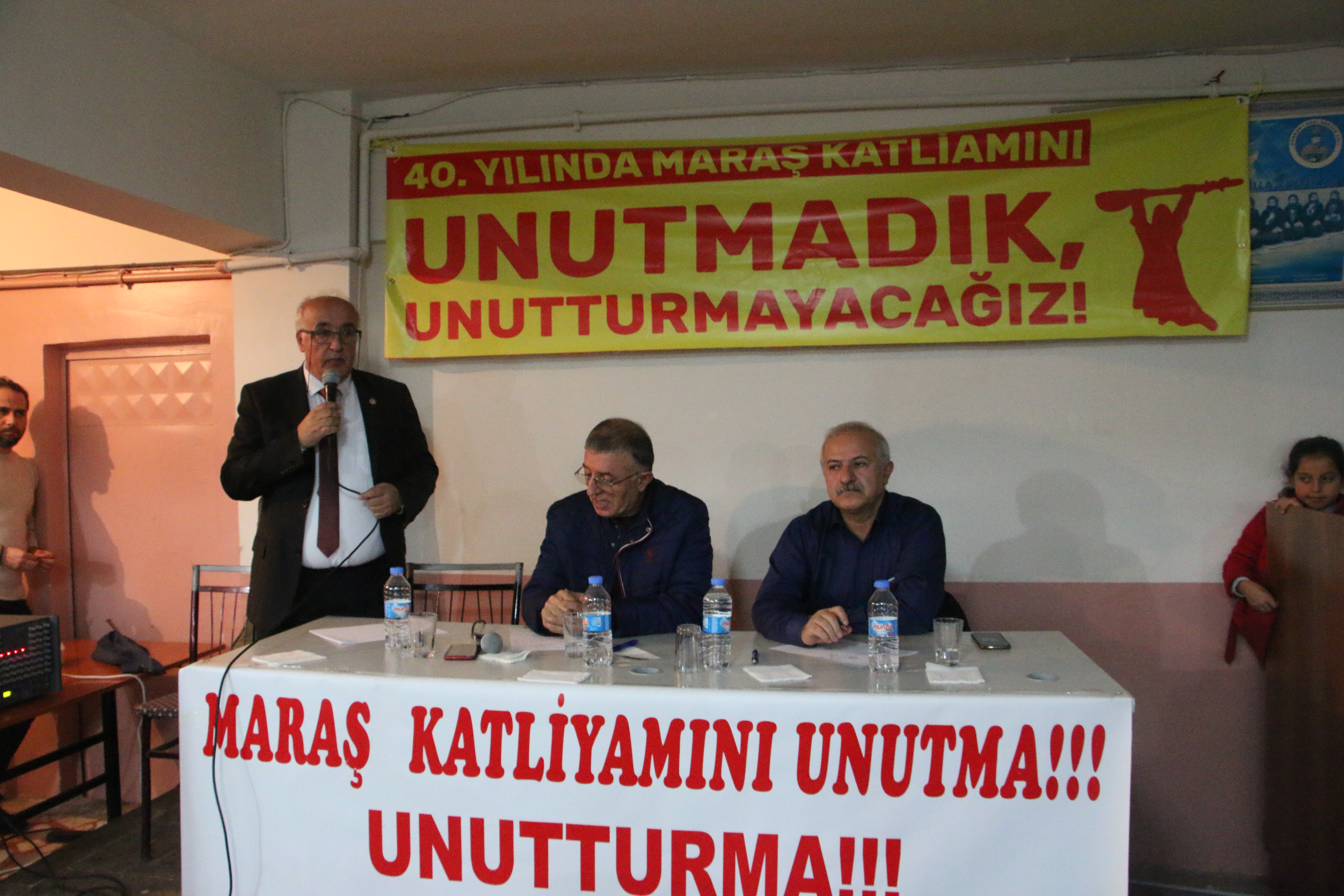 Son olarak konuşan HDP İstanbul Milletvekili Zeynel Özen de, “Bu olayı üç şekilde incelemek gerekiyor. Ekonomik, siyasi ve inançsal olarak. Maraş bu katliamları daha öncede yapmıştı. Maraş’ın tarihi böyle. 1915’te de Ermeni halkını katledip kalan Ermenileri sürgün edip mallarına el koydular. 1970’te ise Aleviler sıtmadan ölsün diye Pazarcık Ovası’nda bataklık olan yerlere yerleştirmişlerdi. 1976 ise yapılan barajlar ile bu ova en verimli hale geldi. 1978’de ise Maraş’taki sermaye el değiştirerek Alevilerin eline geçti” diye konuştu.