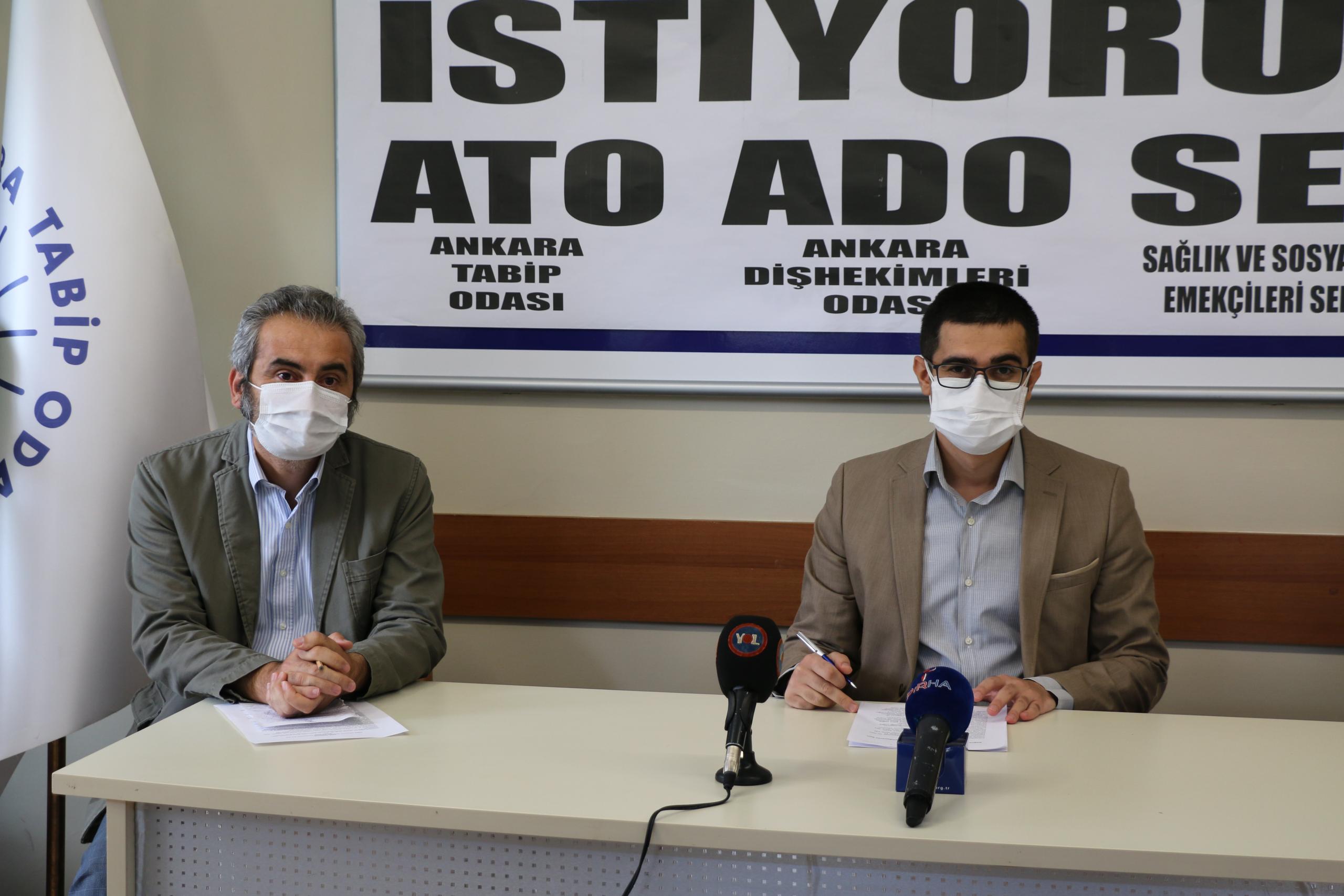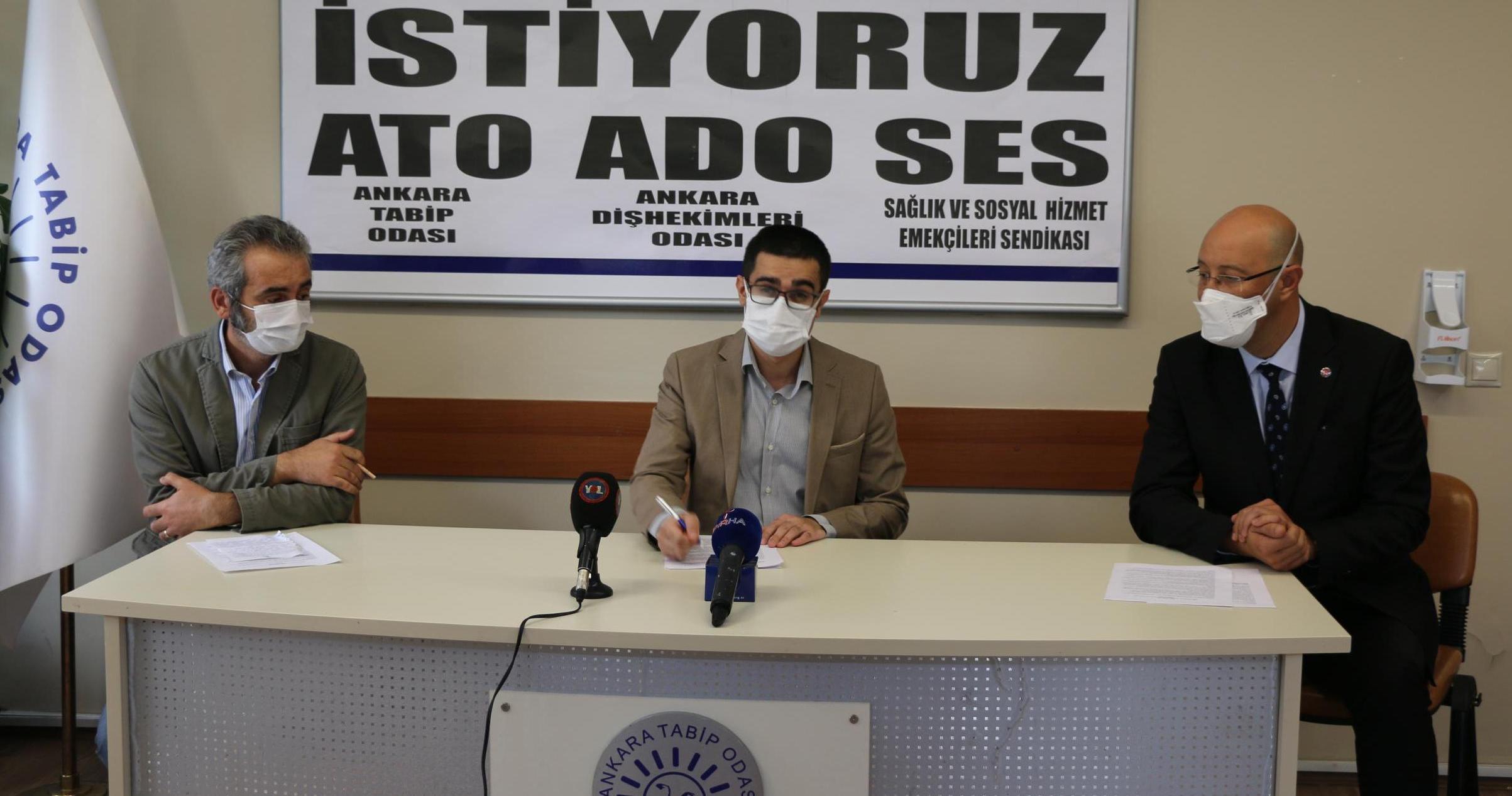 Ankara Tabip Odası, Ankara Diş Hekimleri Odası, Sağlık ve Sosyal Hizmet Emekçileri Sendikası Ankara Şubesi, “Ankara’da pandemi son hali” başlıklı basın toplantısı yaptı. Toplantıya Sağlık ve Sosyal Hizmet Emekçileri Sendikası (SES) Ankara Şube Eş başkanı Kubilay Yalçınkaya, Ankara Diş Hekimleri Odası (ADO) Yönetim Kurulu Başkanı Dr. Faik Serhat Özsoy ve ATO Yönetim Kurulu Üyesi Dr. Haydar Can Dokuyan katıldı.