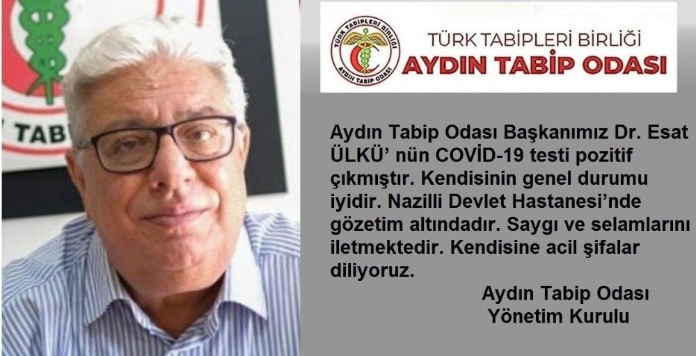 Türk Tabipleri Birliği (TTB) Merkez Konseyi, Aydın Tabip Odası (ATO) Başkanı Dr. Esat Ülkü’nün koronavirüs nedeniyle hayatını kaybettiğini açıkladı.