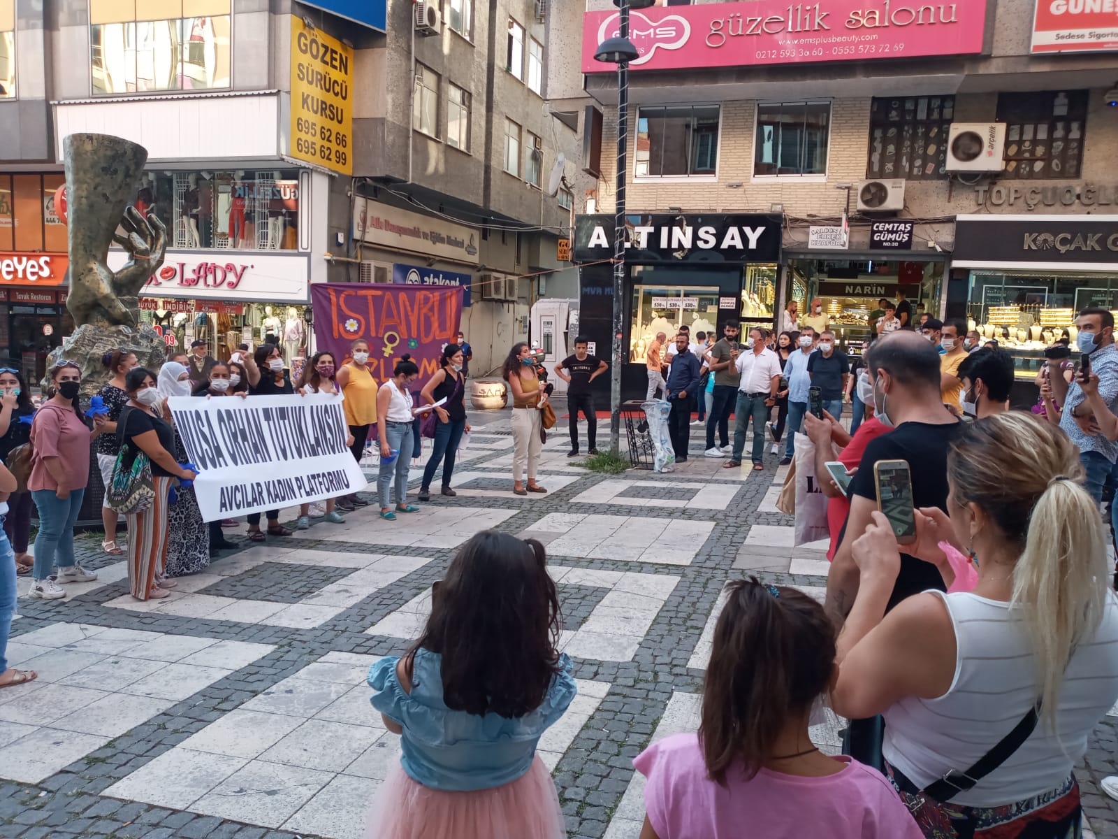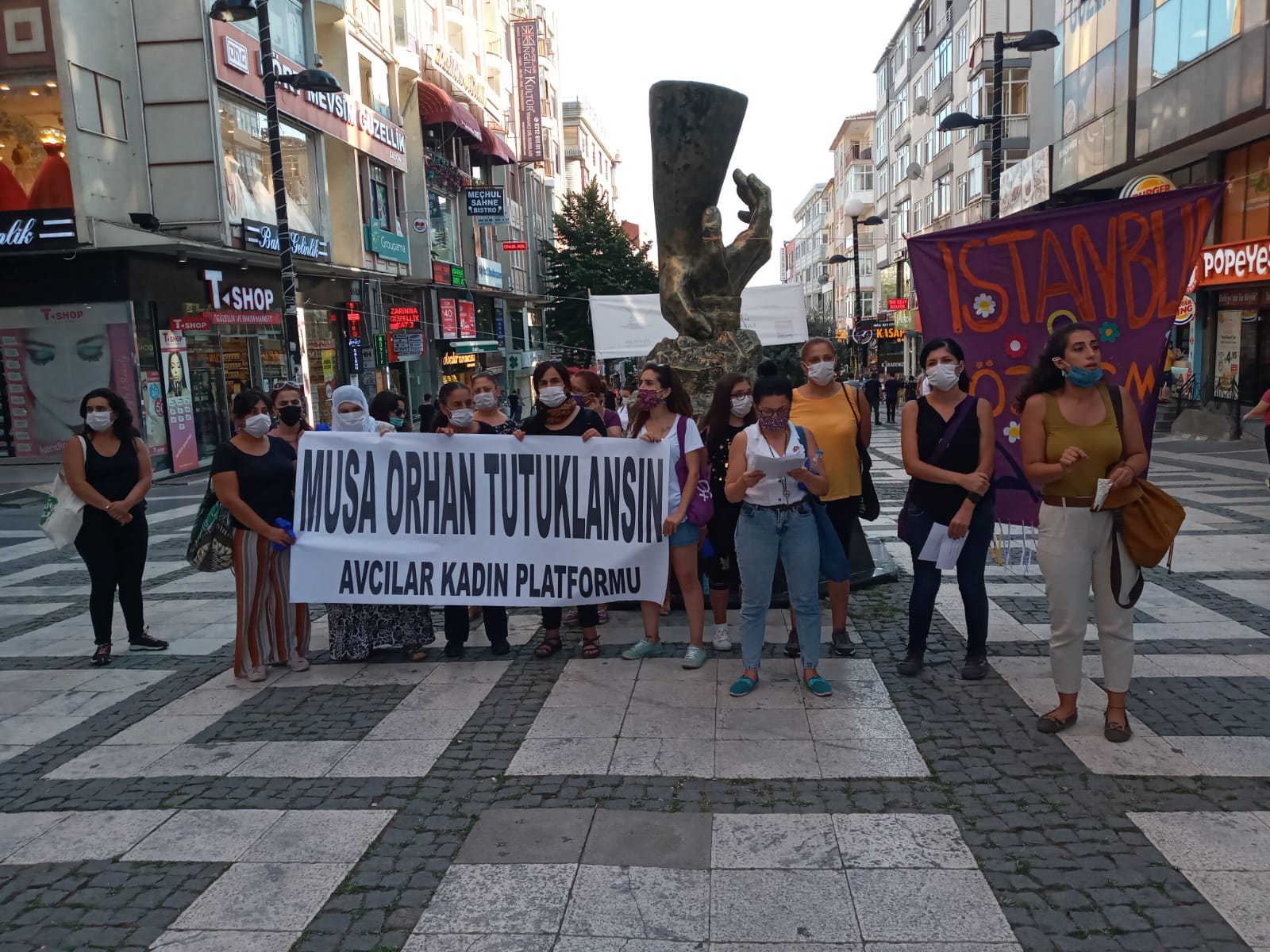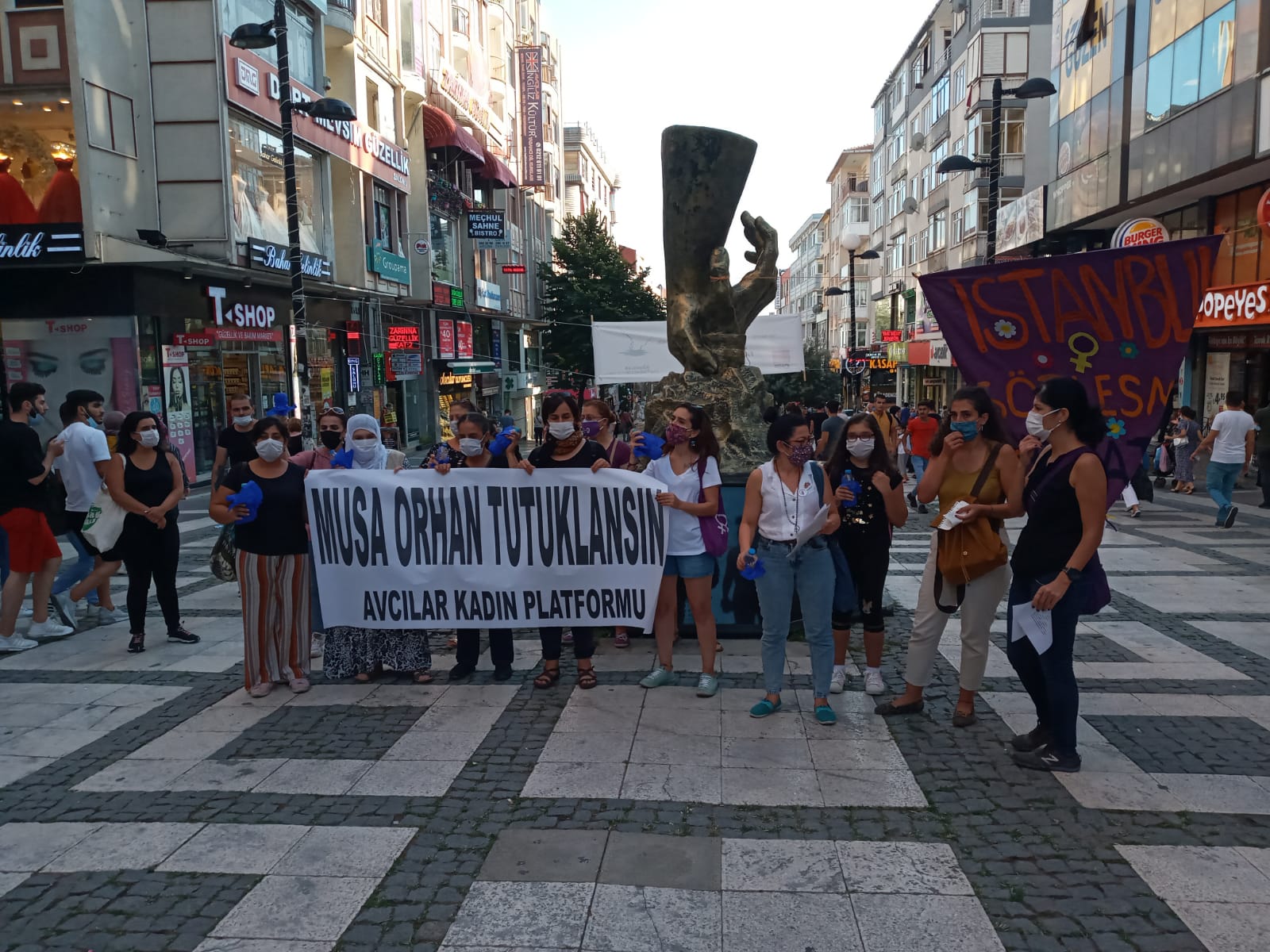 İstanbul’da Avcılar Kadın Platformu’nun çağrısıyla Avcılar Marmara Caddesi’ndeki Deprem Anıtı önünde bir araya gelen kadınlar, Musa Orhan’ın serbest bırakılmasını, kadına yönelik şiddet, taciz, tecavüz ve kadın cinayetlerini protesto etti.